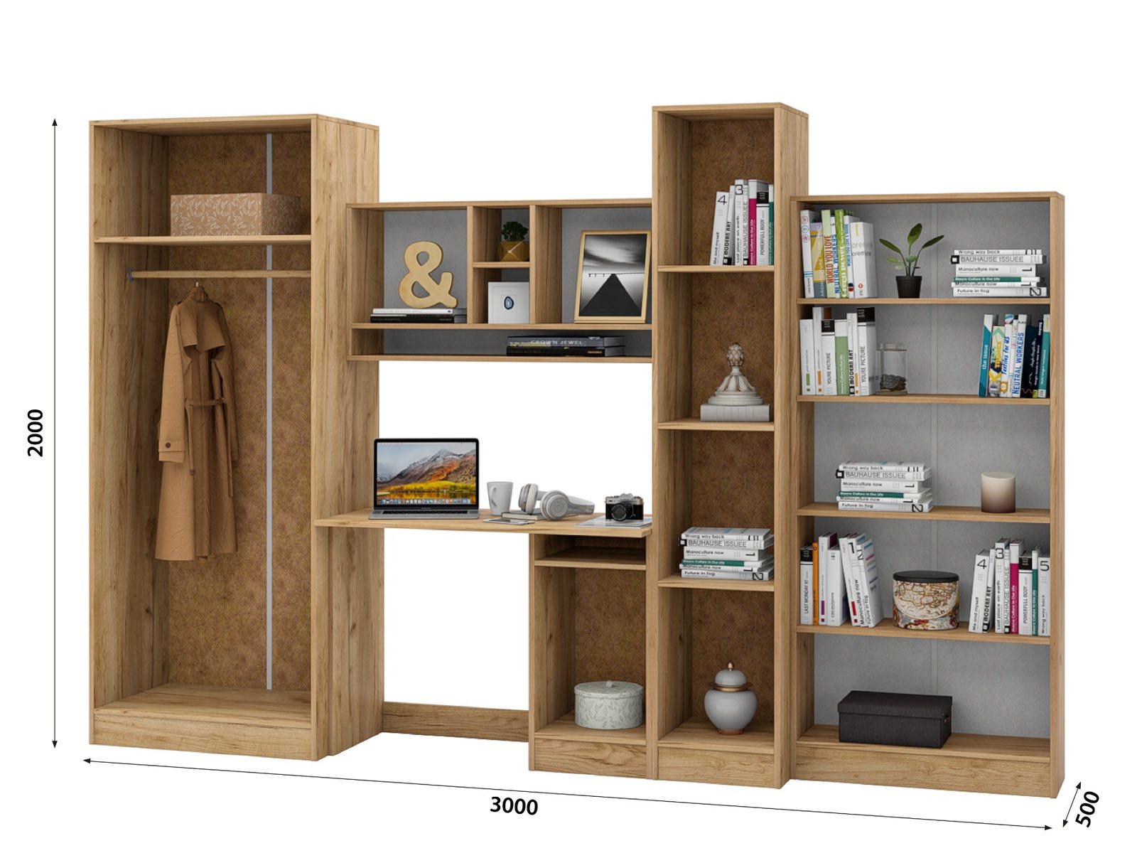 Размер: высота 2000, ширина 3000, глубина 500мм.