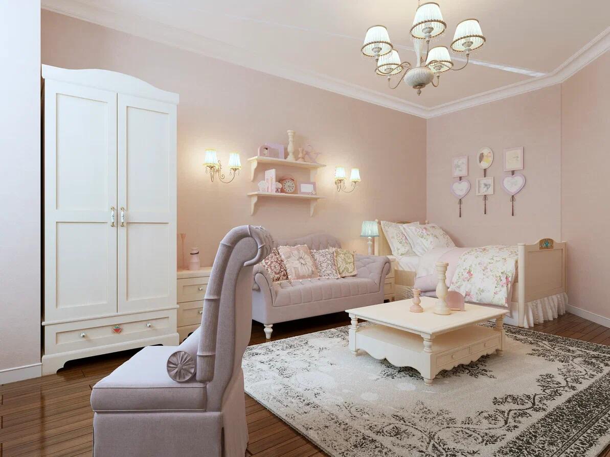 Нежная светлая спальня в классическом стиле для девочки.