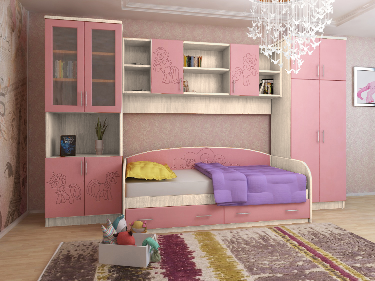 Эстетичная модульная коллекция мебели для обустройства детской комнаты. Материал: МДФ покрытый плёнкой, ЛДСП.