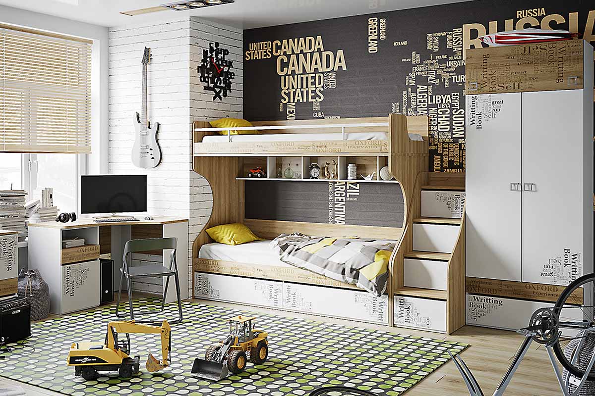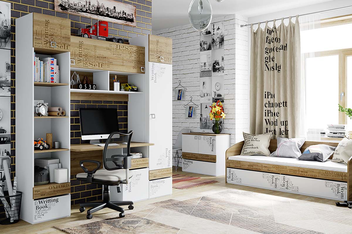 Детская комната «Вега Позитив» Бетон темный / Белый / Фотопечать