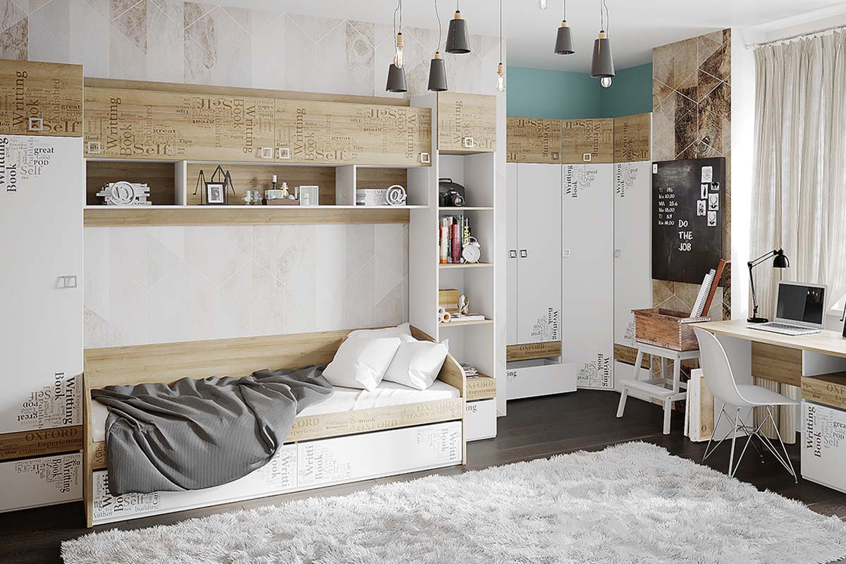 Детская спальня «Сакура» Комплект 1 - Дуб сонома/Белый (BTS)