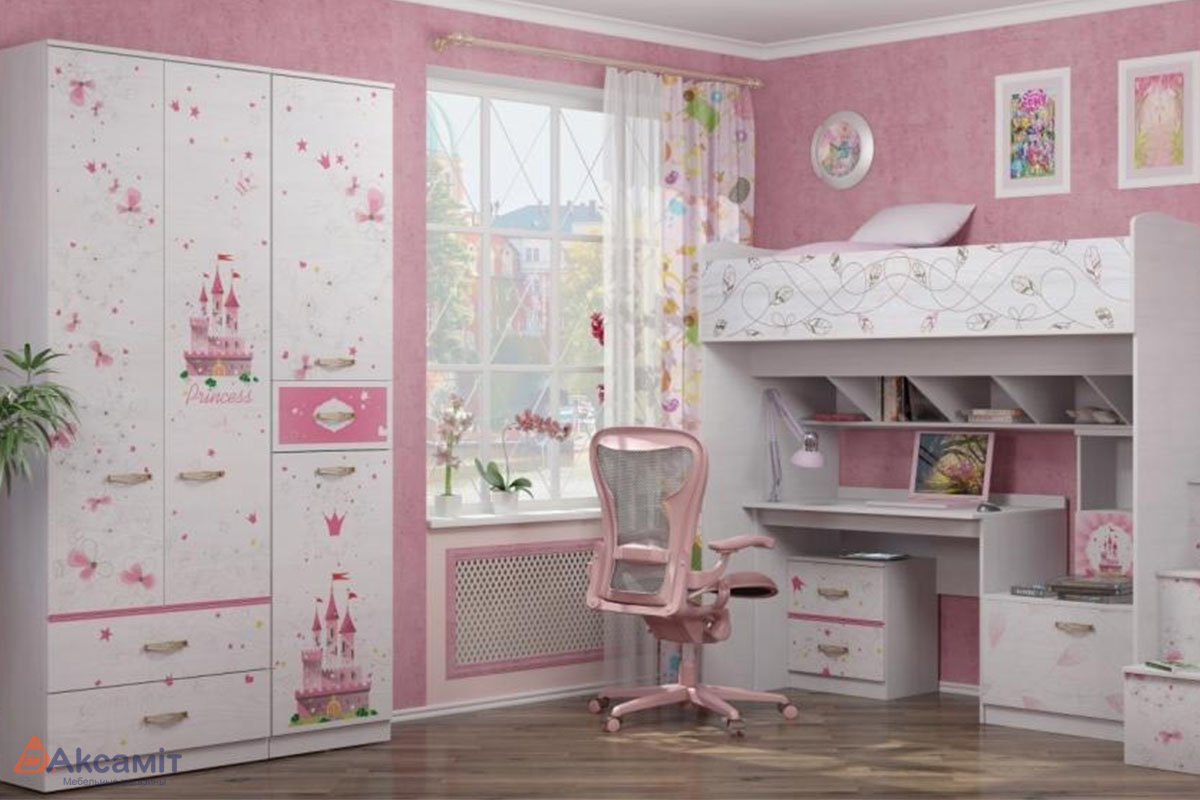 Модульная коллекция мебели для обустройства детской комнаты. Материал: МДФ покрытый плёнкой, ЛДСП.
