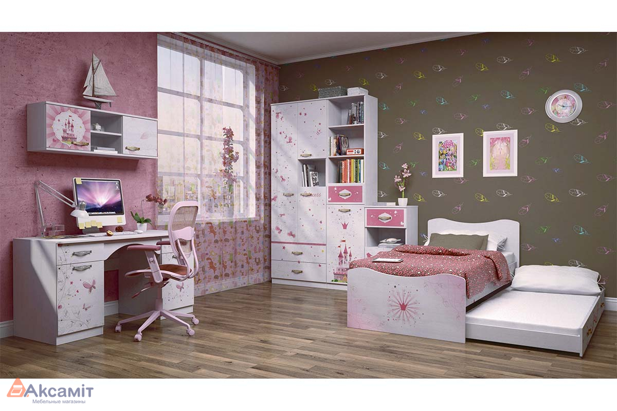 Эстетичная модульная коллекция мебели для обустройства детской комнаты. Материал: МДФ покрытый плёнкой, ЛДСП.