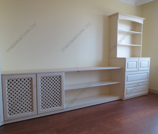 Модульная система в классическом стиле с металлическими ручками. Материал: МДФ покрытый плёнкой, ЛДСП.