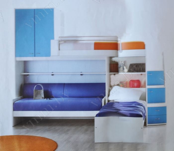 Модульная коллекция мебели для обустройства детской комнаты. Материал: МДФ покрытый плёнкой, ЛДСП.