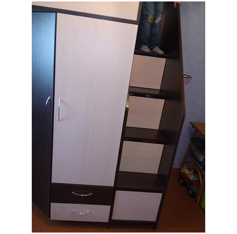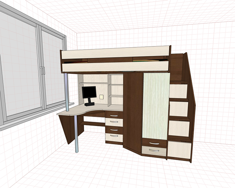 Современная кровать-чердак в детскую обладает повышенным функционалом. Удобный стол позволит выучить уроки, а вместительная кровать даст возможность сражу же и отдохнуть. Наличие шкафа позволит хранить все необходимые вещи в одном месте.