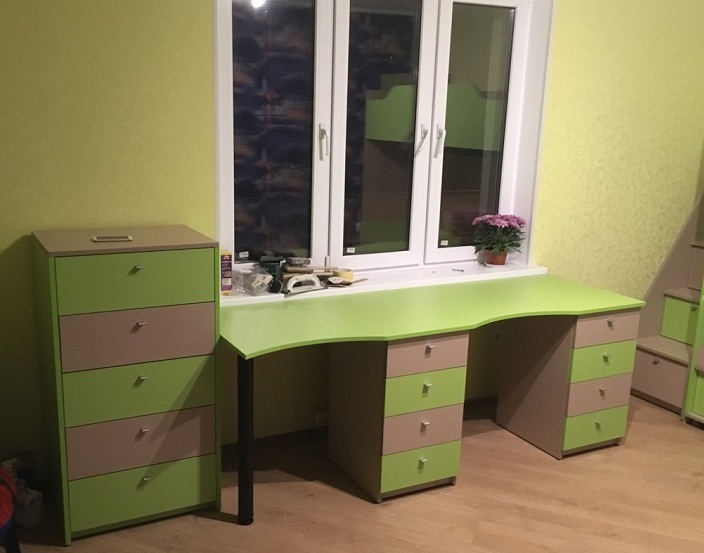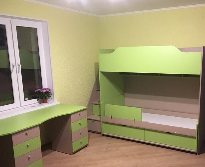 Мебель для детской комнаты в бежево-салатовых тонах