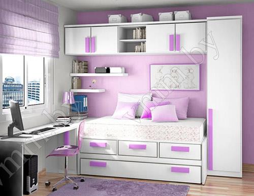 В комнате, оформленной с помощью этой мебели, молодой человек или девушка будут чувствовать себя комфортно и уютно, так как все элементы мебели находятся в непосредственной близости друг к другу. Лаконичный стол, удобная кровать и вместительный шкаф порадуют родителей и понравятся детям.