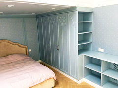 Угловой письменный стол, кровать с ящиками, два пенала, антресоль с полками.