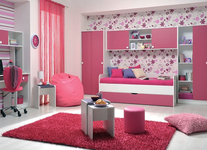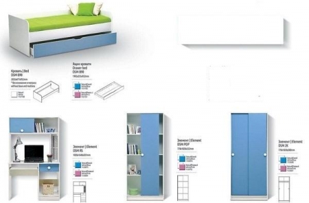 Розовый цвет данного набора мебели для детских комнат свидетельствует о его ориентированности на комнату для девочек. В состав набора входит несколько элементов, которые способны полностью обеспечить ребенка всей необходимой мебелью. Кровать оборудована выдвижными ящиками для белья и постельных принадлежностей. Вместительный шкаф для одежды полностью решает вопрос размещения детской одежды. Ученический стол с полками и ящиками позволяет комфортно выполнять домашние задания.