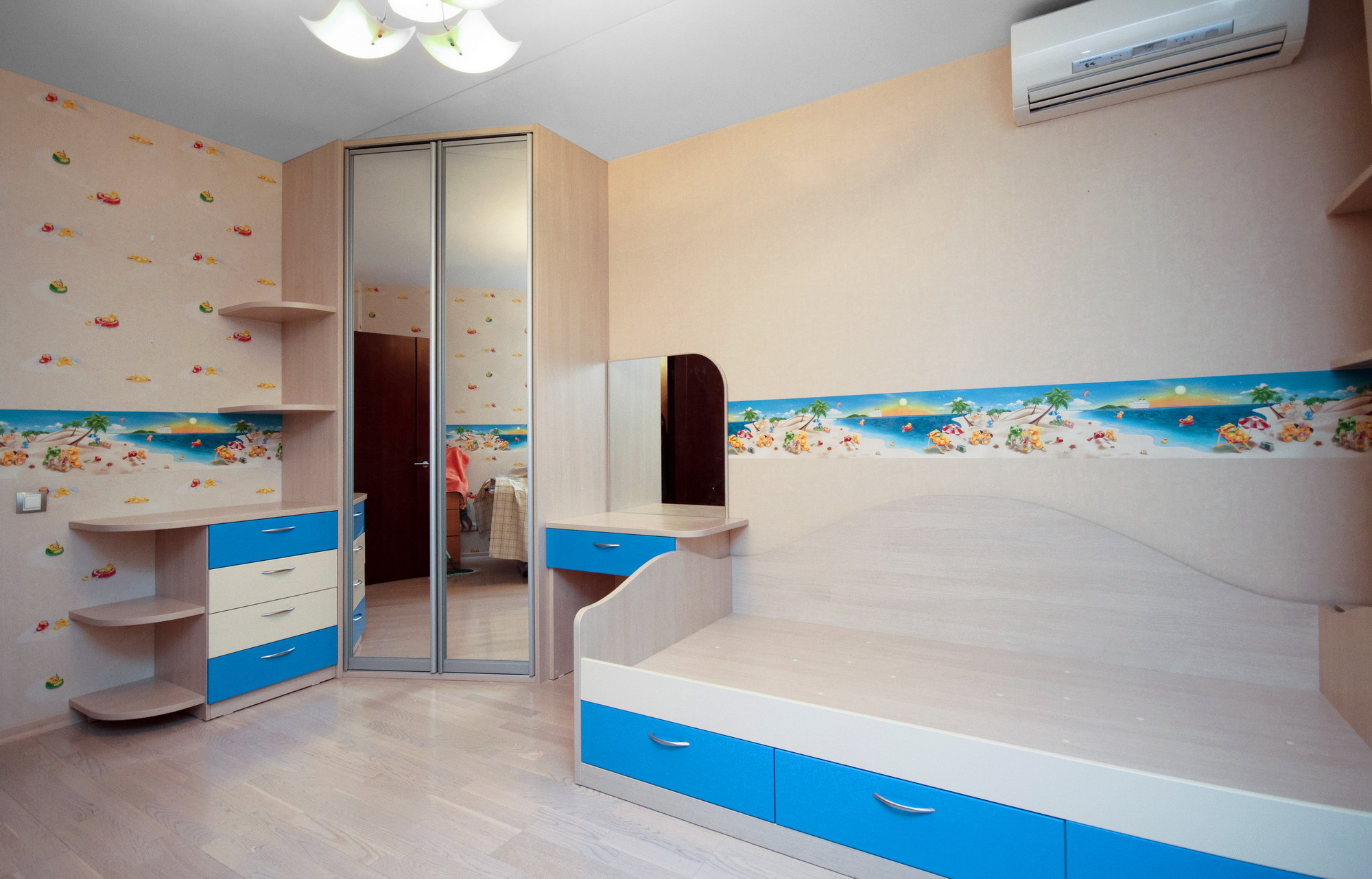 Мебель для детской в бежево-голубом тоне
