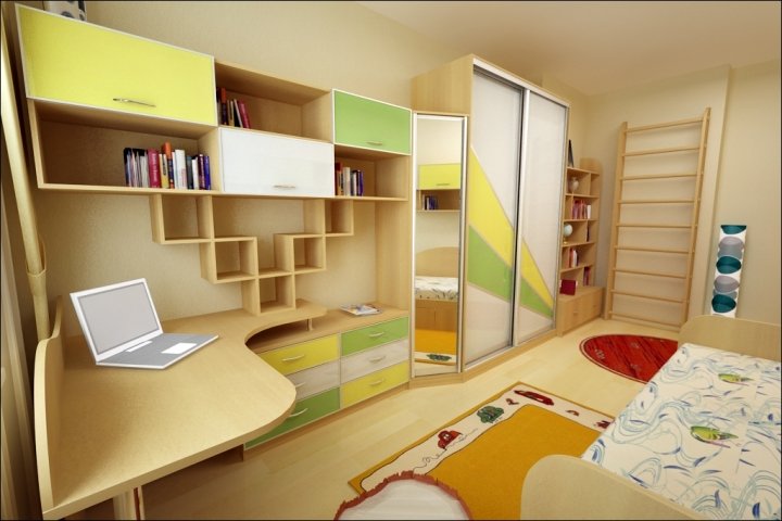 Модульная коллекция мебели для обустройства детской комнаты. Материал: МДФ покрытый плёнкой, ЛДСП.