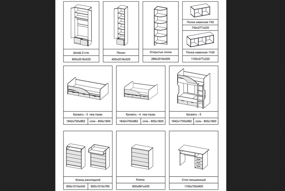 Коллекция мебели в современном стиле для обустройства комнаты подростка. Материал: ЛДСП.