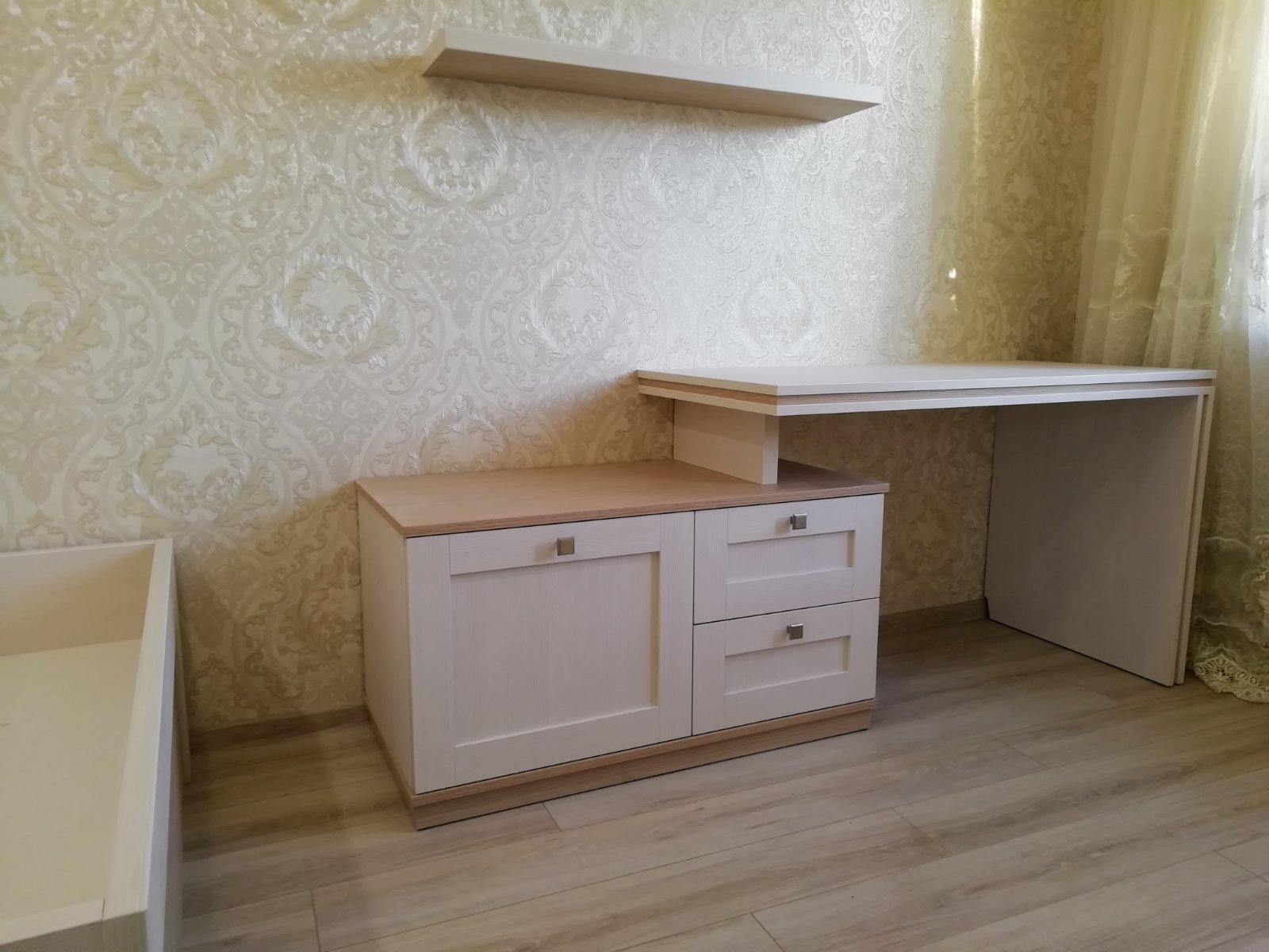 Модульный набор корпусной мебели. Кровать, шкаф, полки, рабочее место.