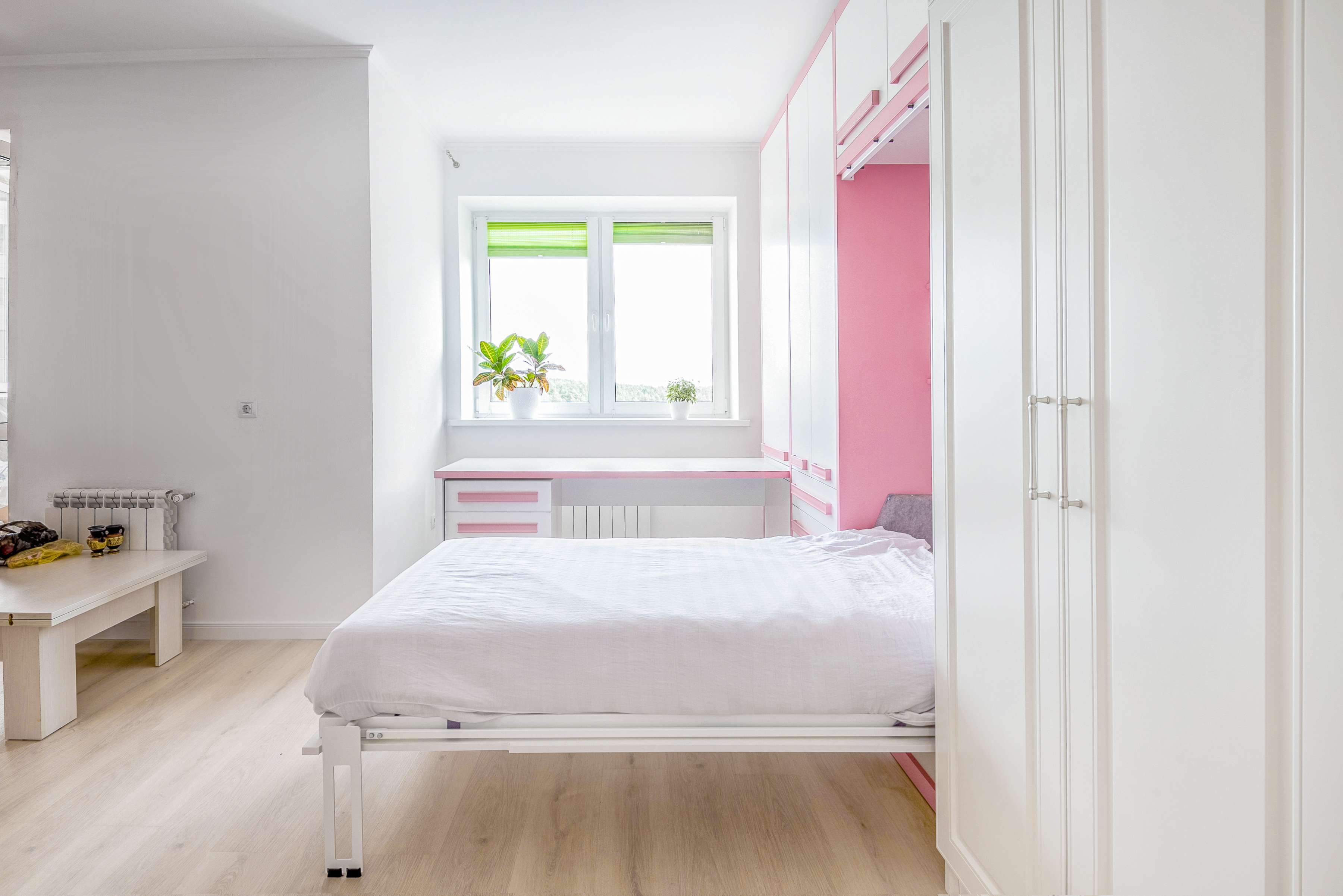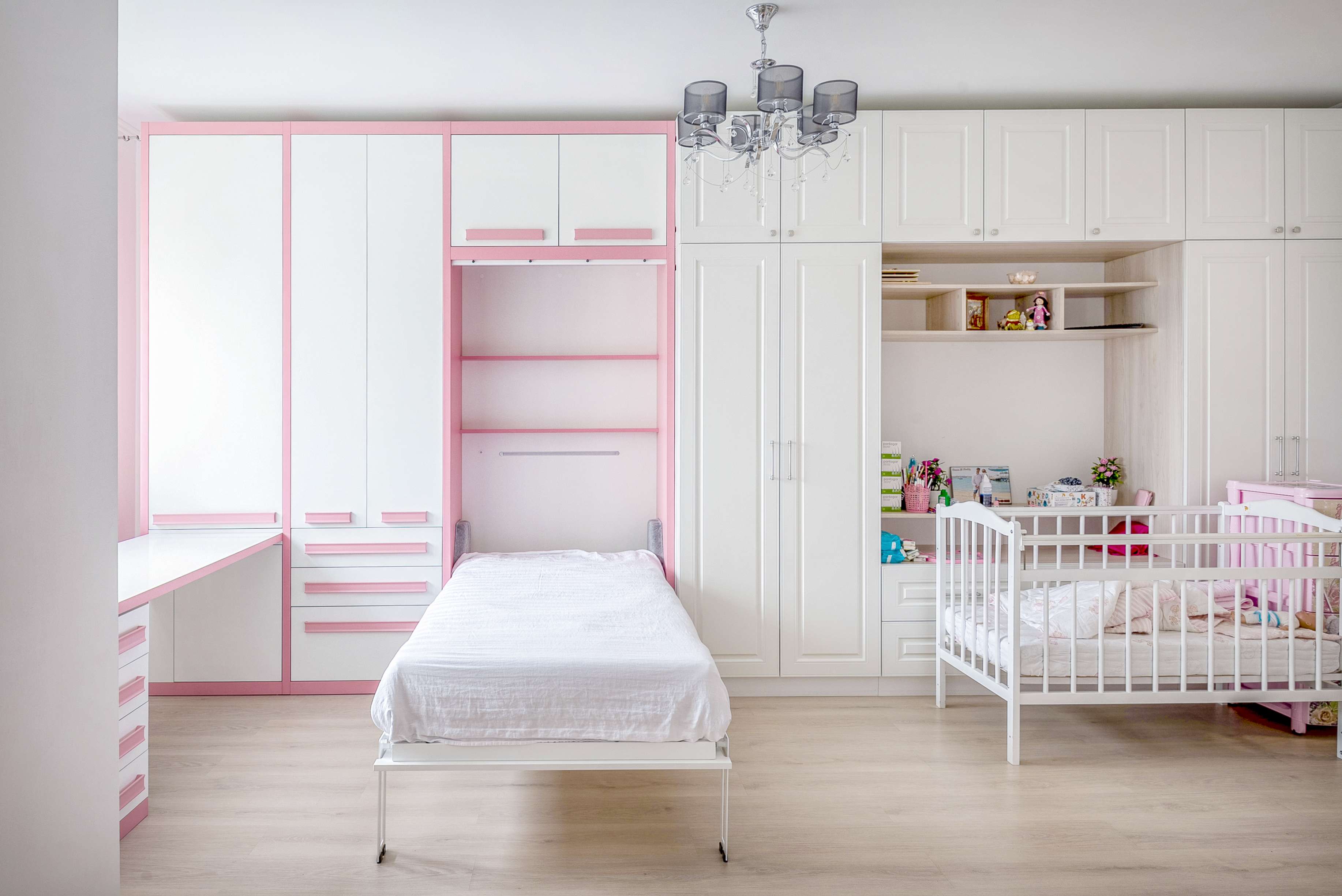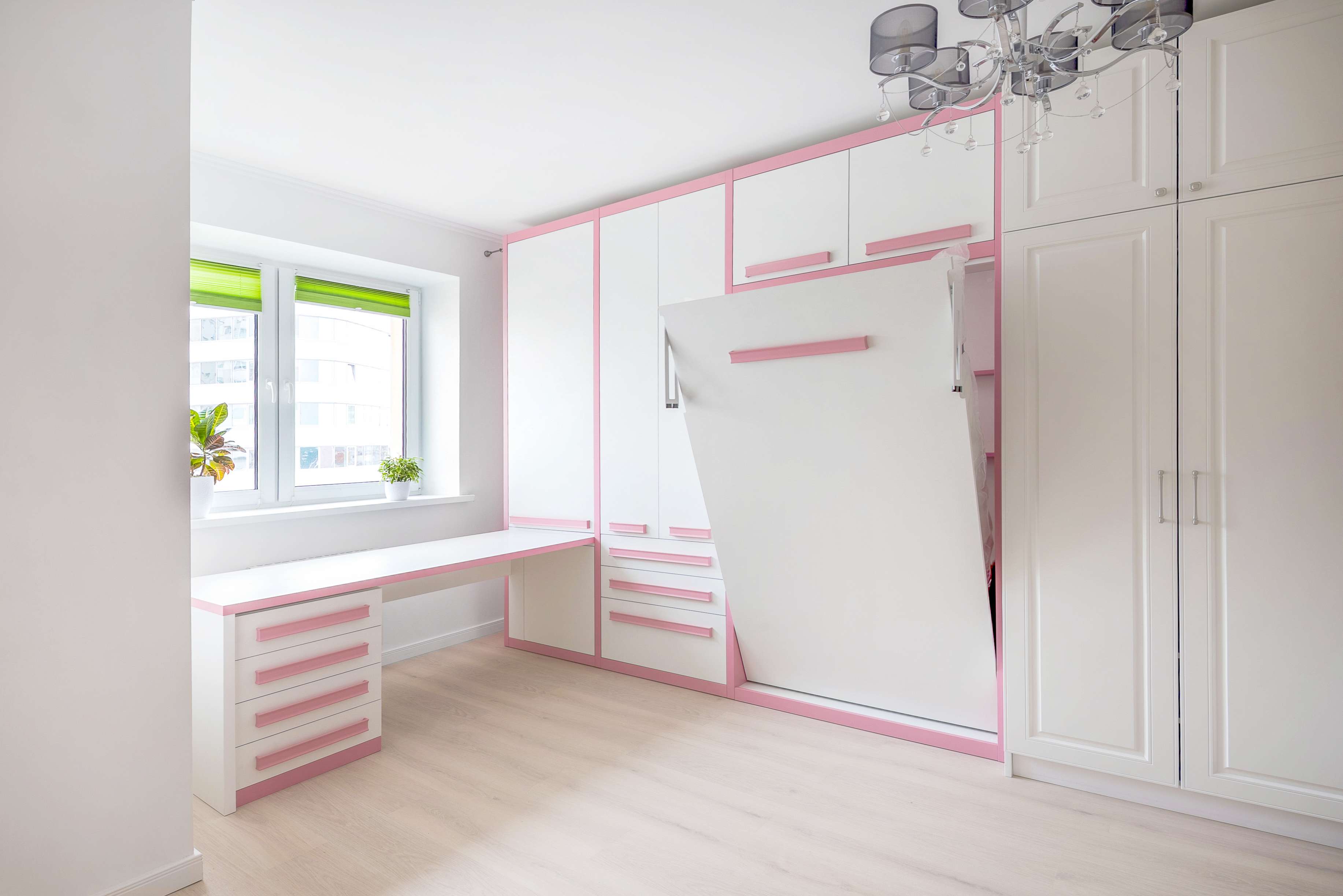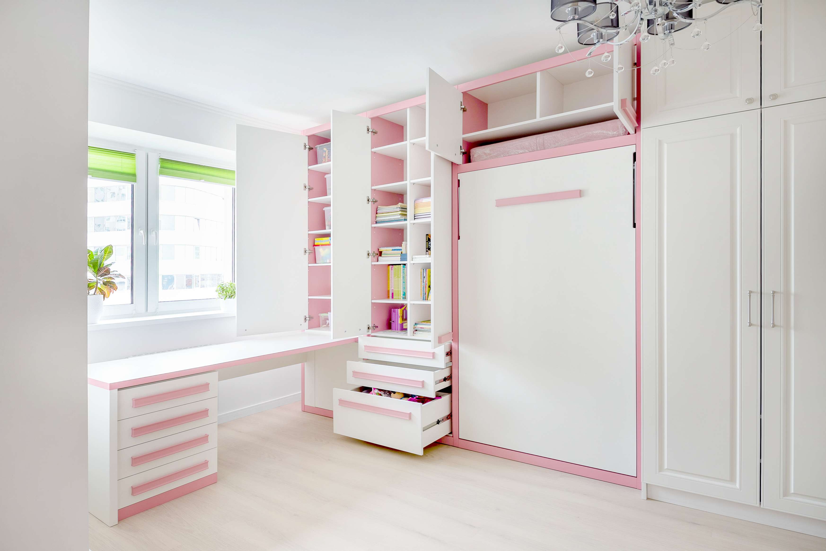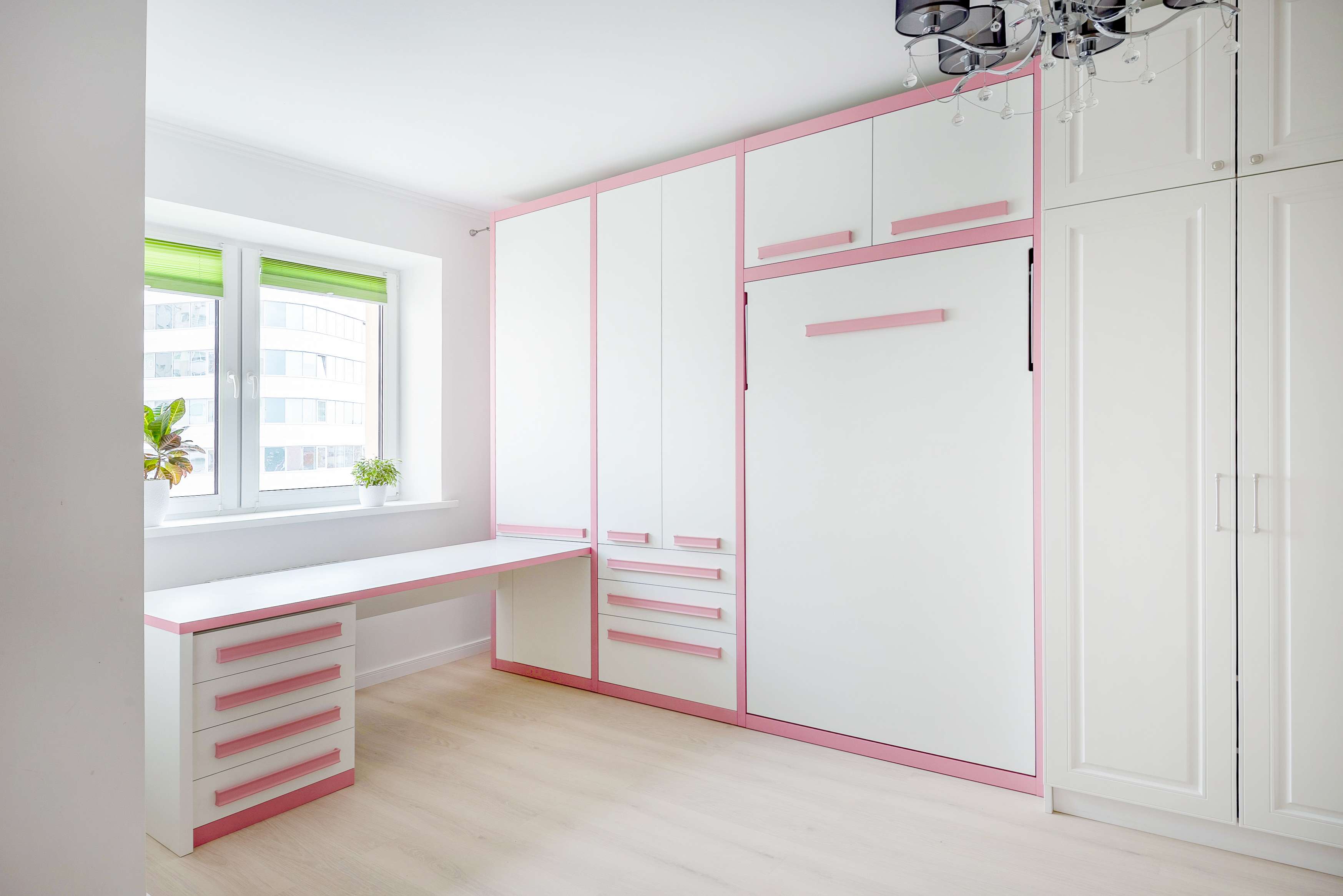 Кровать-трансформер, размер спального места 900х2000 мм с механизмом Боско вертикального сложения. Материал изготовления ДСП Egger, ручки: массив. Проект «Софти» выполнен по индивидуальному заказу.