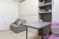 Детская для двоих детей из ЛДСП Egger. Включает кровать-трансформер с мягким изголовьем, кровать в нише, шкаф, оnкрытые полки и рабочее место.
