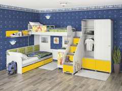 Модульная коллекция мебели для обустройства детской комнаты. Материал: МДФ покрытый плёнкой, ЛДСП.