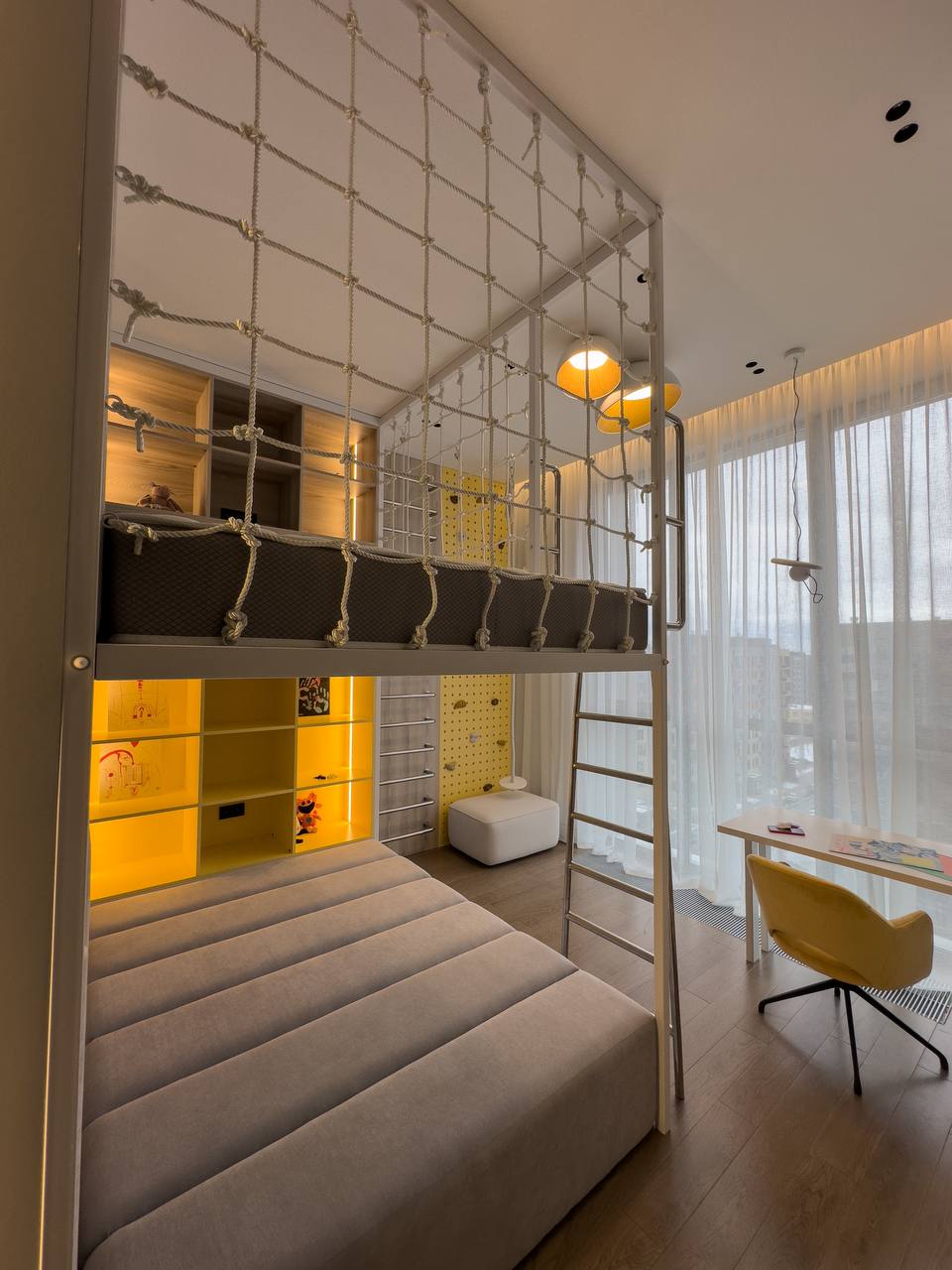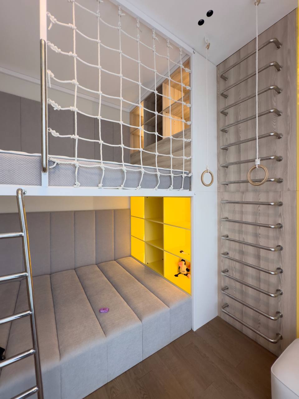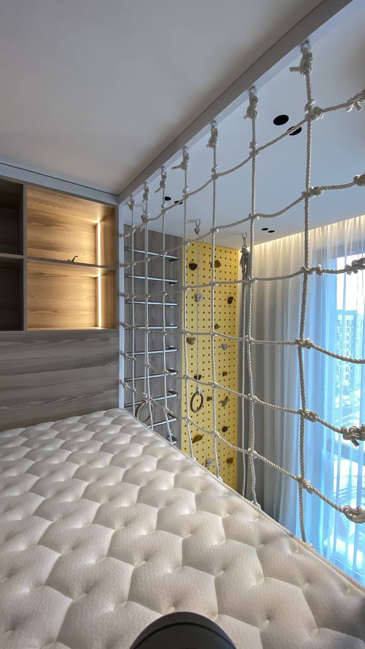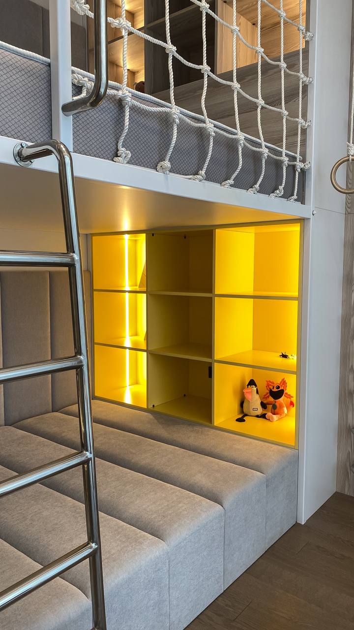 Идеальное решение для активных детей и заботливых родителей! Эта многоуровневая конструкция объединяет кровать, зону отдыха и спортивный уголок, экономя пространство и создавая яркую игровую атмосферу.