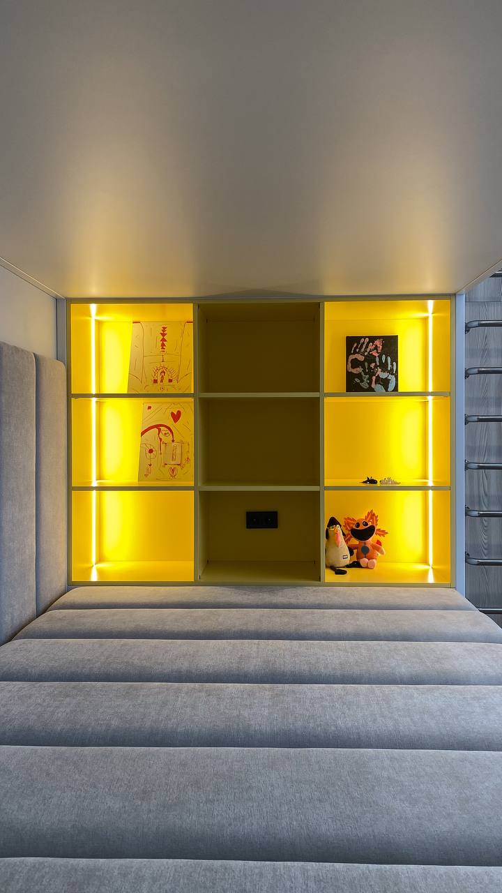 – Подсветка в нишах (LED, тёплый свет)