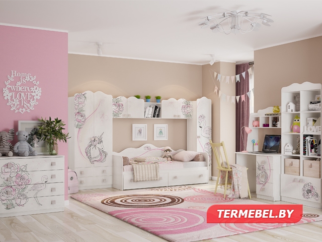 Мебель для детской комнаты в розовом цвете
