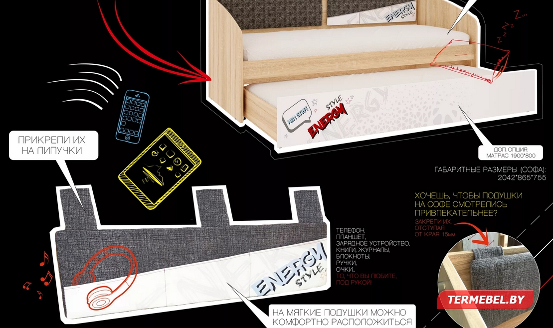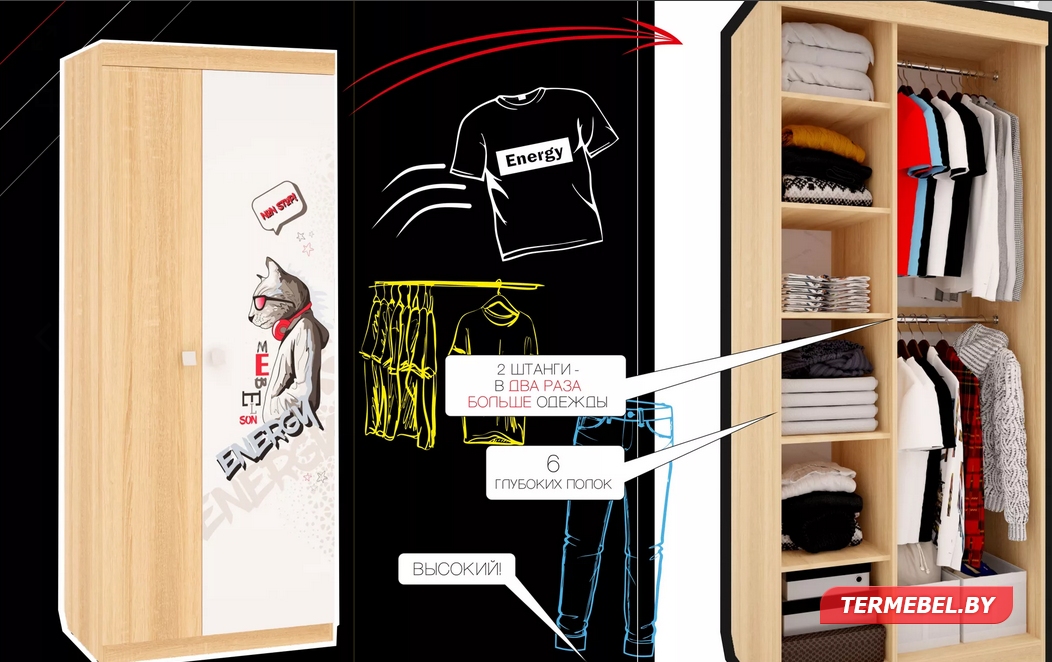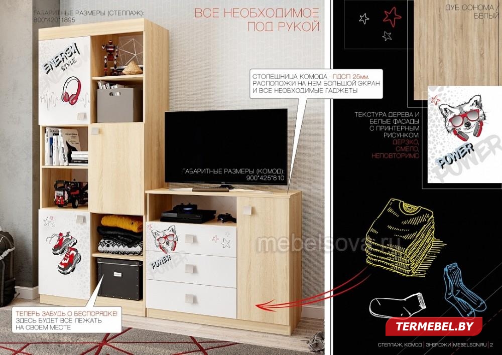 Коллекция мебели в современном стиле для обустройства комнаты подростка. Материал: ЛДСП.