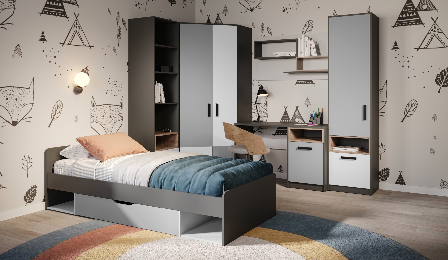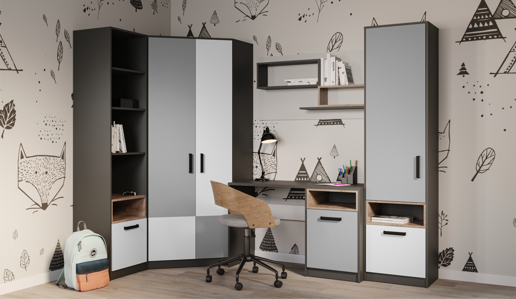 Модульная детская «Квадро» Антрацит/шиншилла/эндгрейн