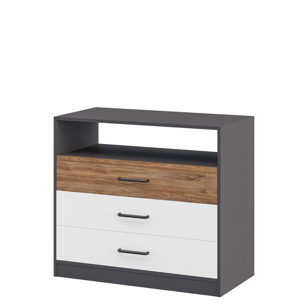 Коллекция Мальма для молодежной комнаты создана, исходя из последних веяний минимализма, которые так ценят люди, идущие в ногу со временем. При создании коллекции мы опирались на два главных правила подбора мебели для современной молодежной комнаты: функциональность и нейтральное цветовое сочетание. Цветовая палитра коллекции Мальма: белый, графит, Дуб Стирлинг. Спокойные оттенки мебели станут прекрасным фоном для ярких аксессуаров и вещей, помогут избежать лишнего визуального шума в интерьере. Молодежная комната – это не только место для сна, но и учебный класс, рабочий кабинет, гардеробная, место для хобби и отдыха, а нередко и гостиная для встречи с друзьями. Именно поэтому в коллекции Мальма такой широкий выбор модулей на любой вкус. За надежность и долговечность коллекции отвечает фурнитура высокого качества брэнда GTV (Польша), мебель оснащена петлями с доводчиками и прочными шариковыми направляющими полного выдвижения. Матовые черные металлические ручки от фирмы Gamet идеально дополняют дизайн коллекции. Трендовое сочетание ручек-скоб и кнопок в одной серии мебели помогает визуально разнообразить внешний вид лаконичных фасадов.