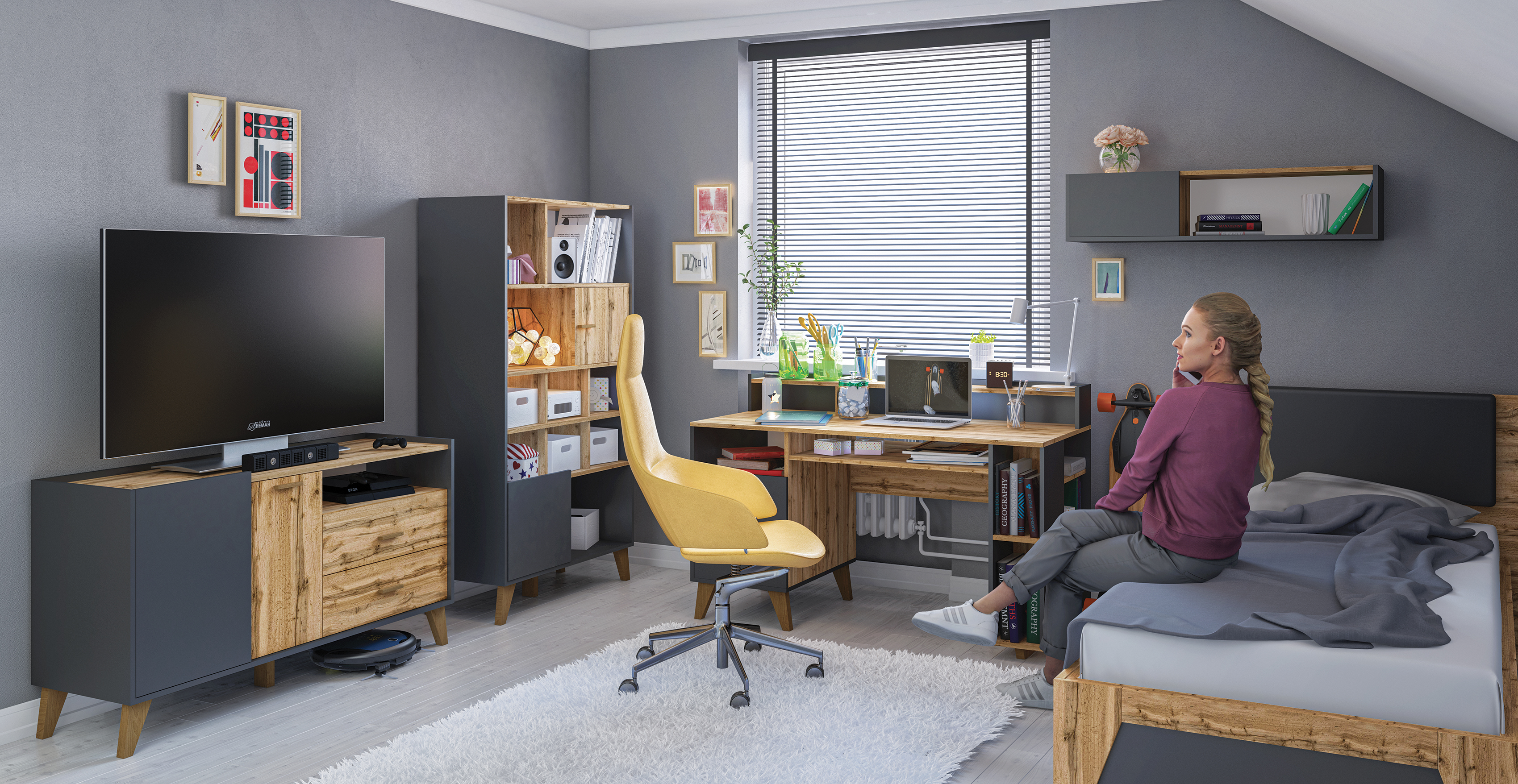 Коллекция мебели в современном стиле для обустройства комнаты подростка. Материал: ЛДСП.