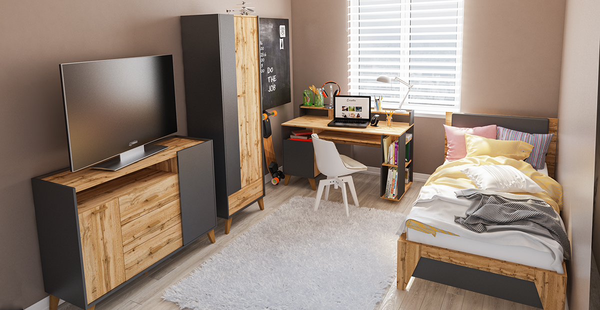 Модульная детская «Сканди» композиция 1 (Графит, Дуб Вотан)