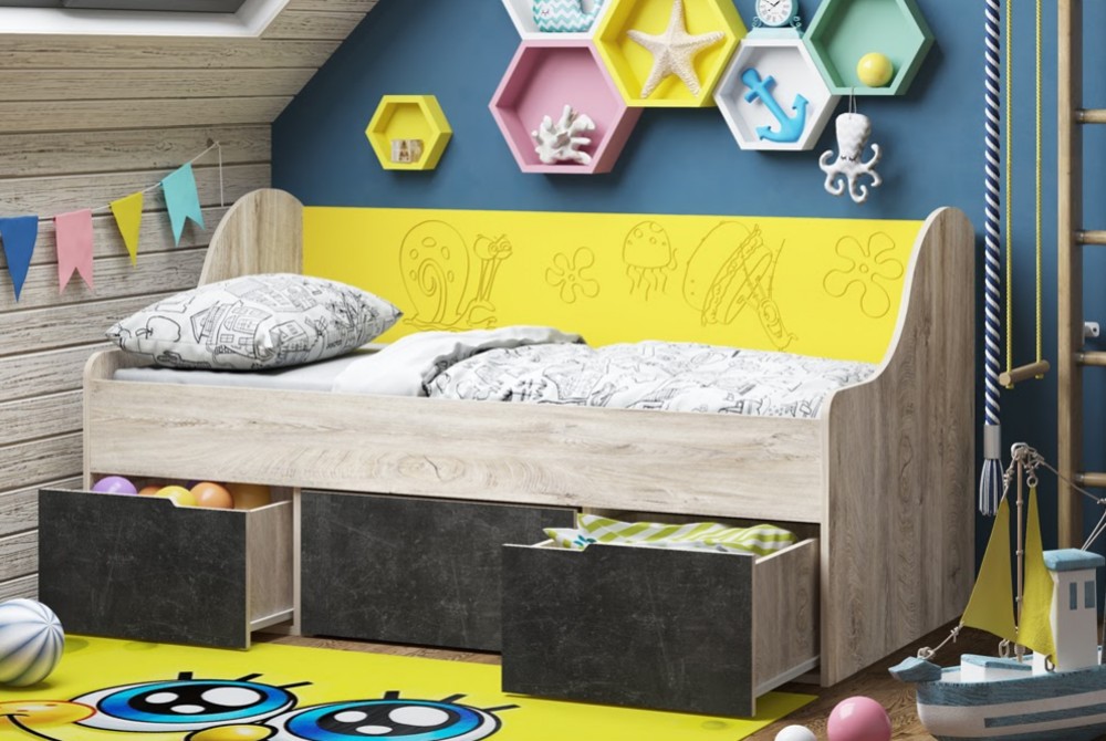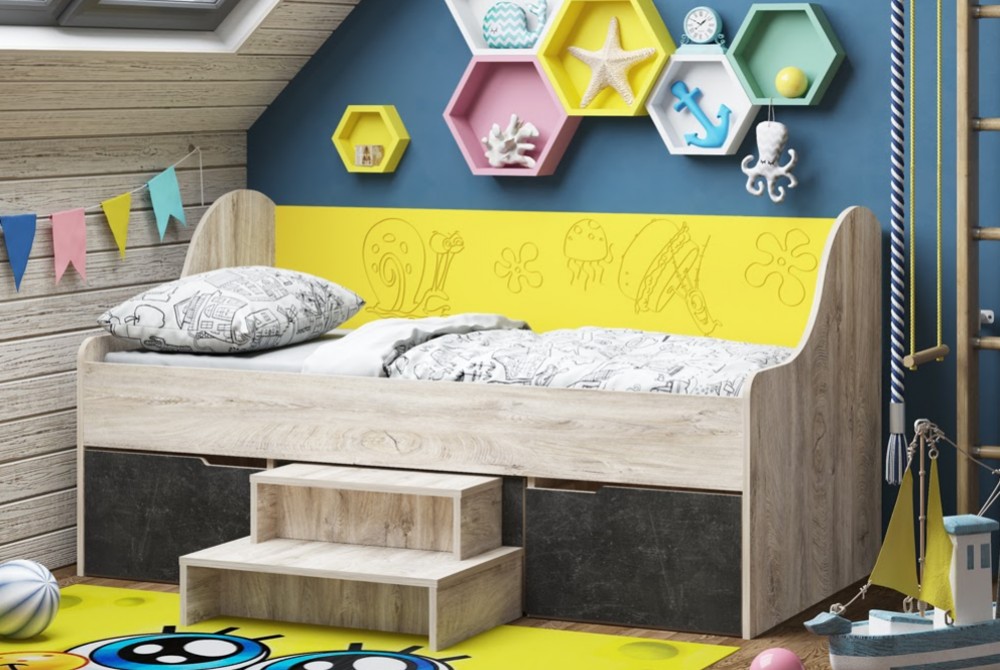 Модульная коллекция мебели для обустройства детской комнаты. Материал: МДФ покрытый плёнкой, ЛДСП.