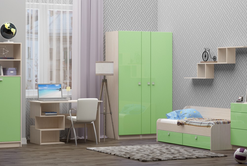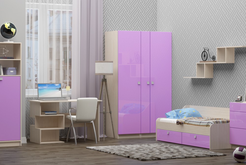 Модульная коллекция мебели для обустройства детской комнаты. Материал: МДФ покрытый плёнкой, ЛДСП.
