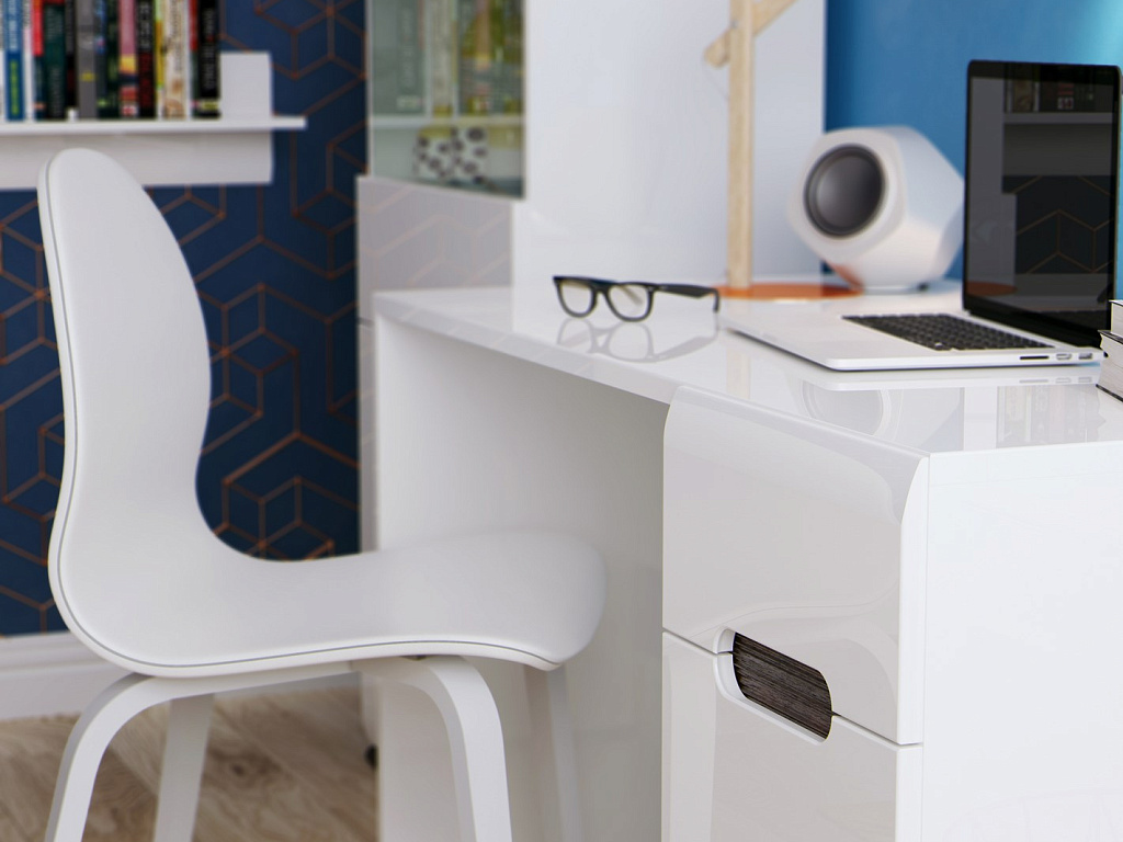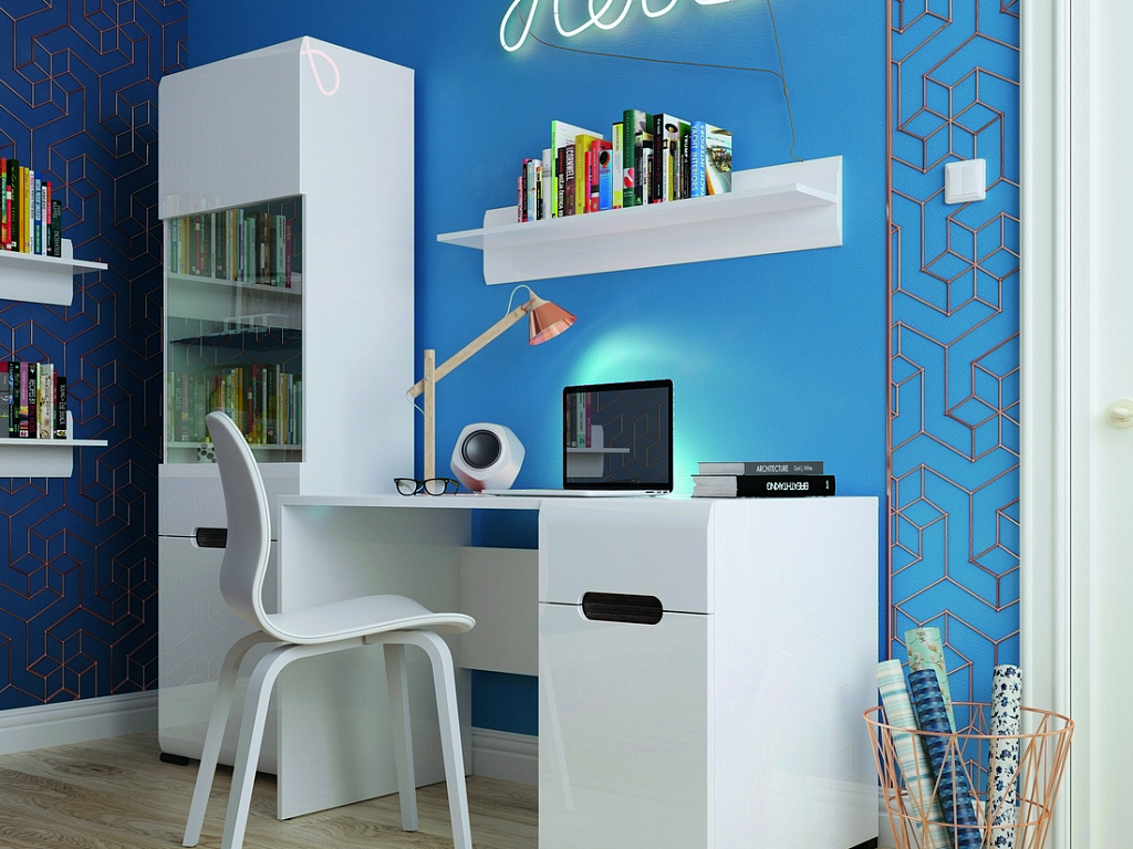 код 152031Коллекция модульной мебели с белыми глянцевыми фасадами для детской. Материал: МДФ, ЛДСП.