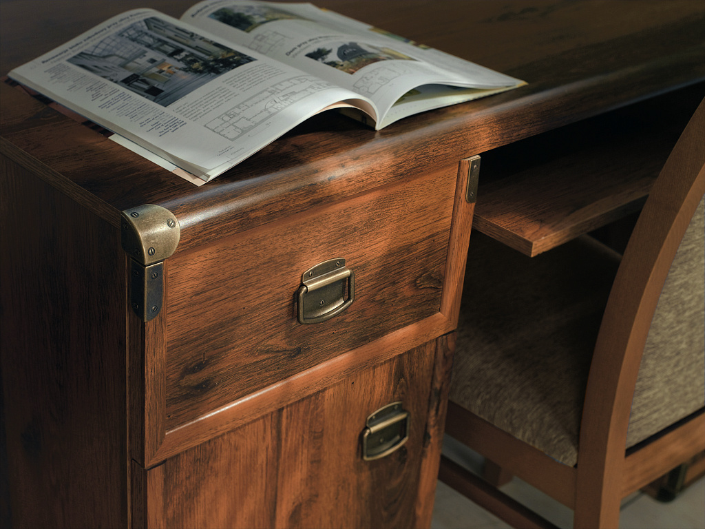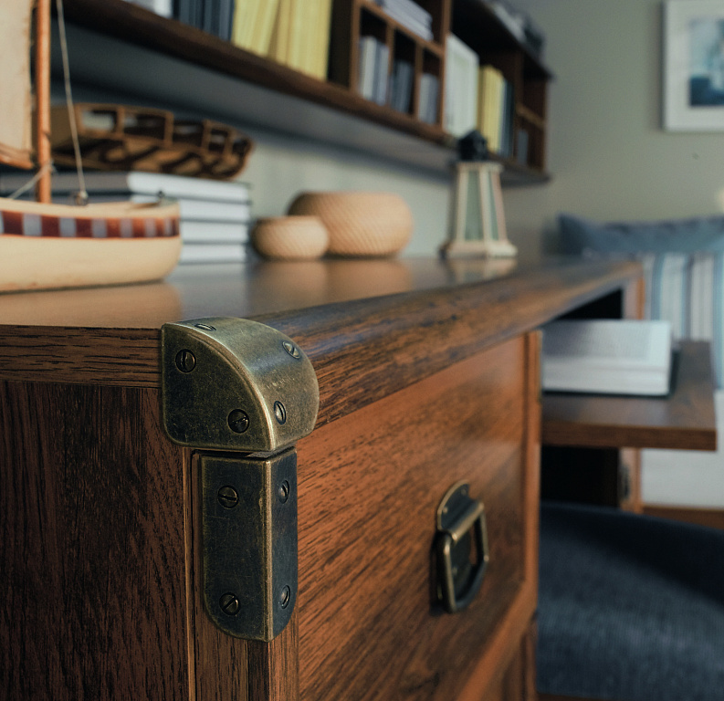код 152041Имитация состаренного дерева, металлические накладки на углах, ярко выраженная древесная структура. Материал: МДФ, ЛДСП.