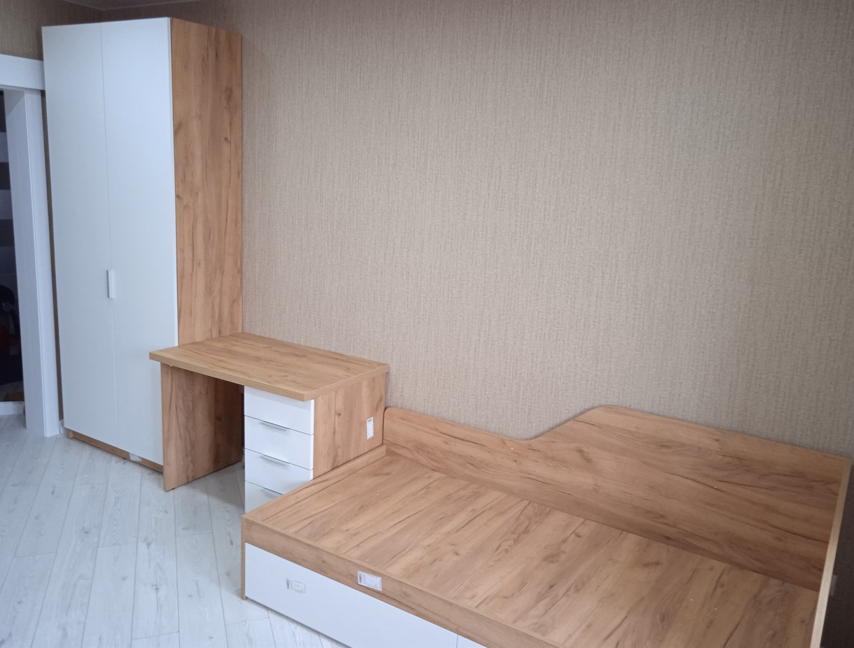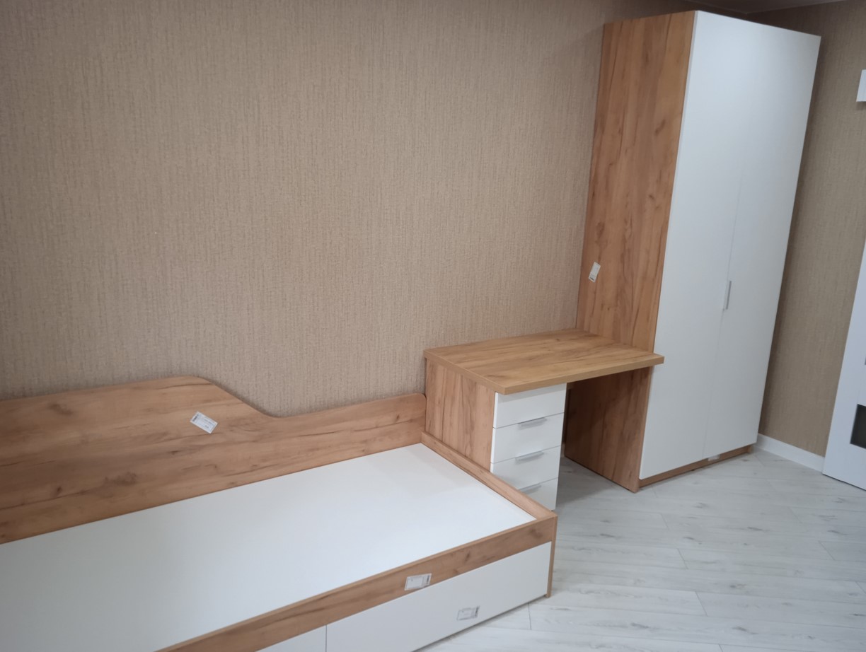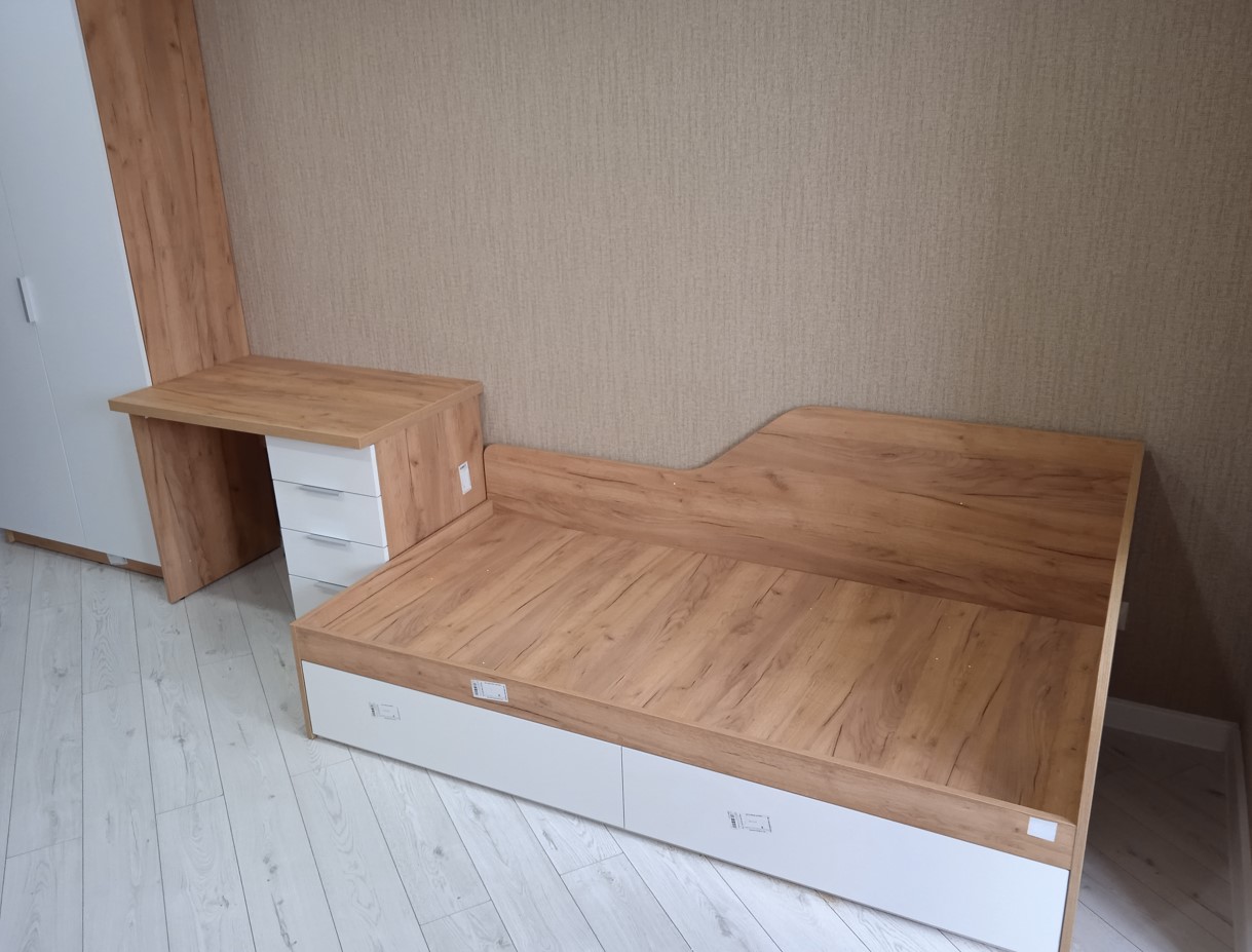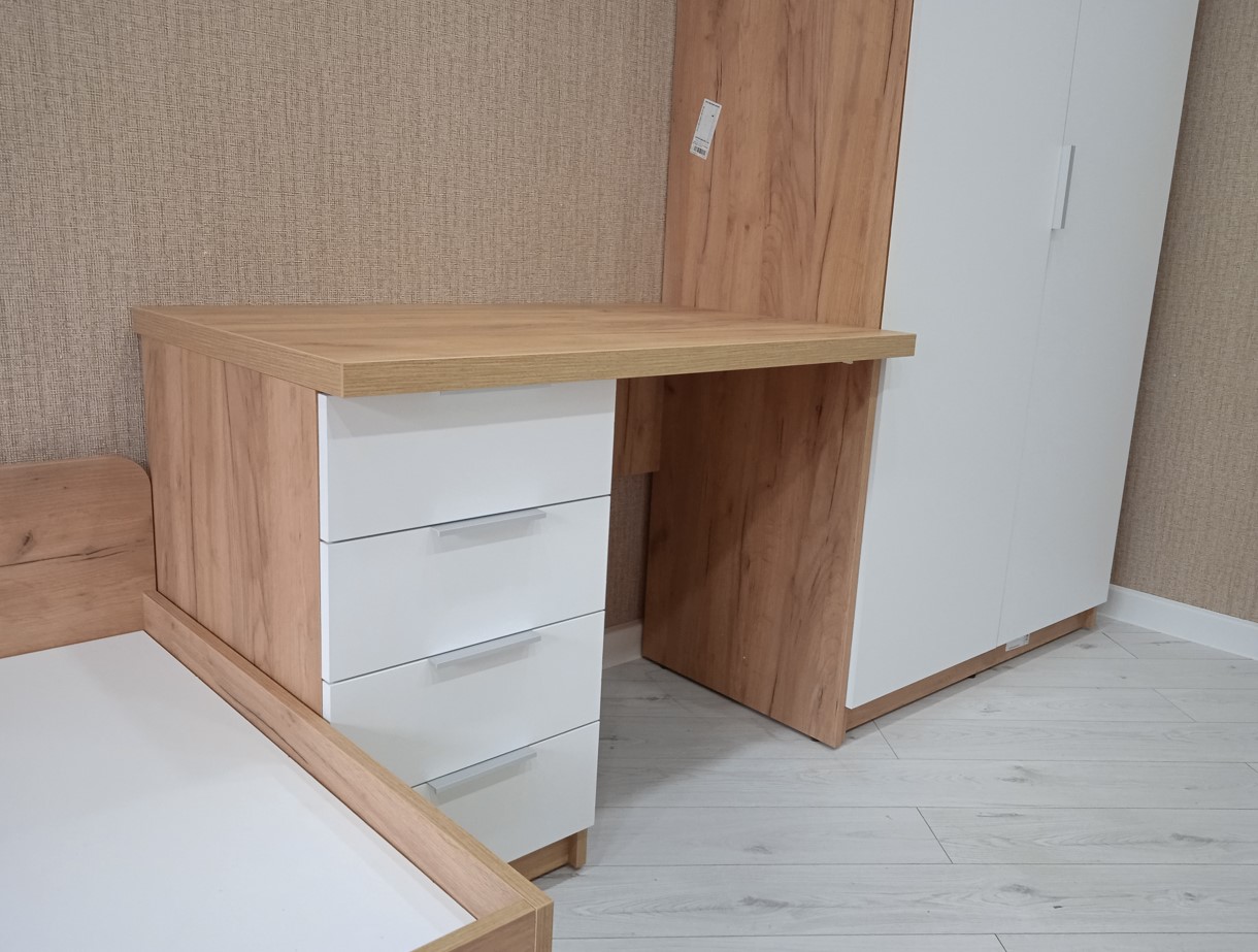 Выдвижная тумба. Ящики для постельного белья. Стол письменный.