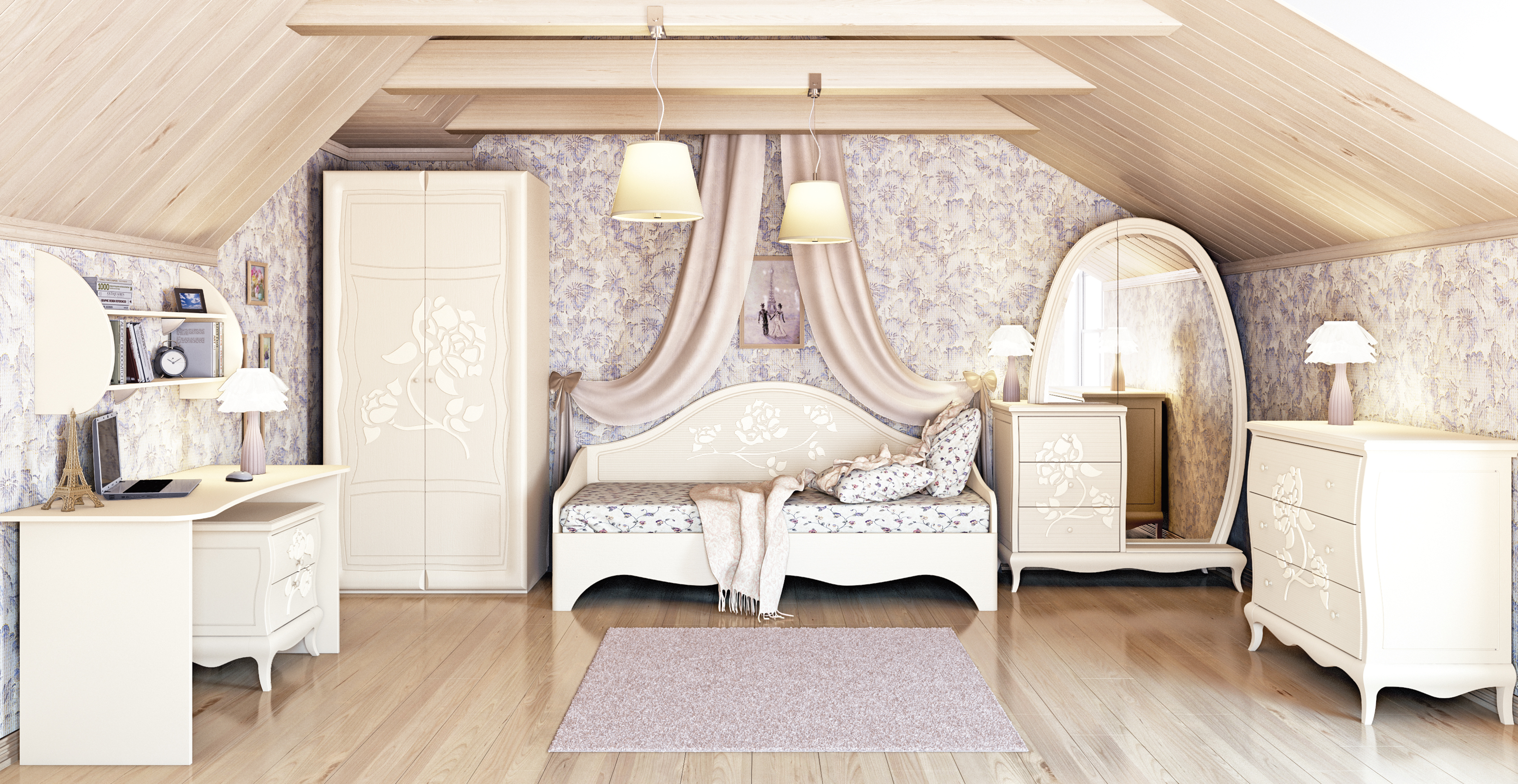 Набор мебели в детскую с кроватью-чердаком