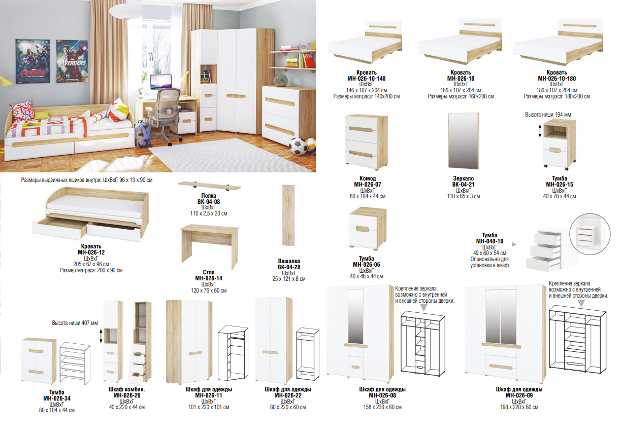Коллекция мебели в современном стиле для обустройства комнаты подростка. Материал: ЛДСП.