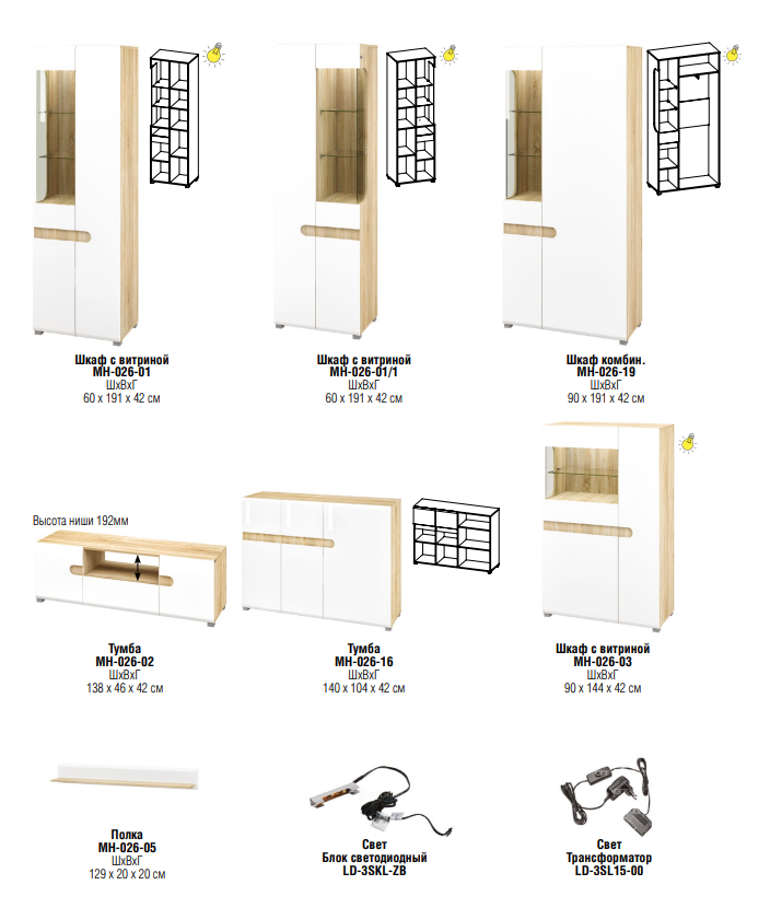 Цвет фасада: Белый глянец. Цвет корпуса: Дуб каньон.