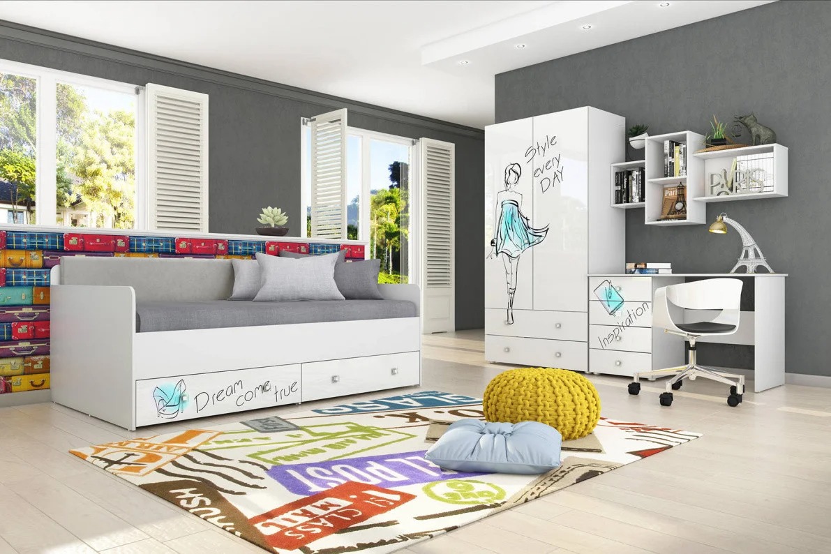 Коллекция мебели в современном стиле для обустройства комнаты подростка. Материал: ЛДСП.