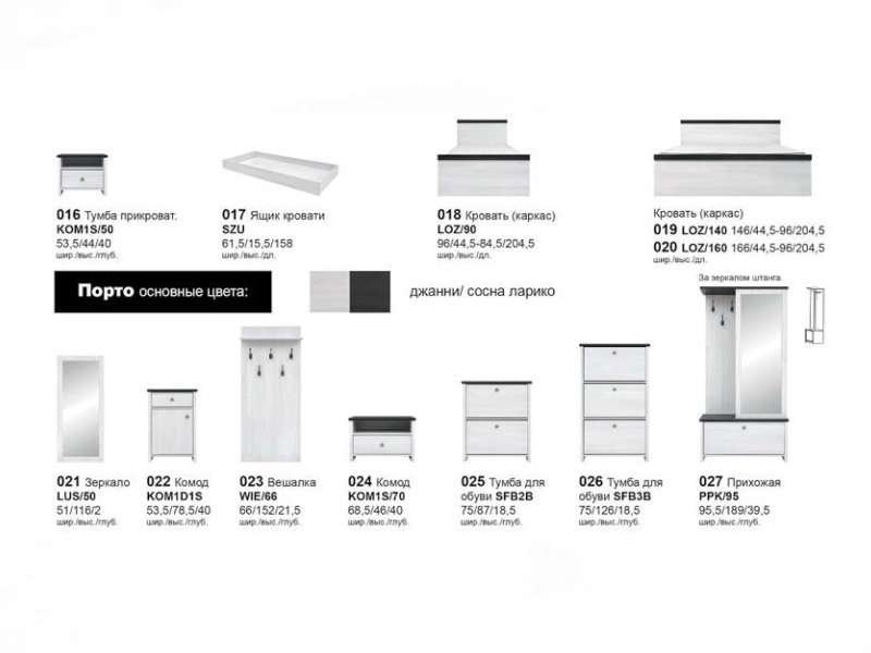 - Кровать Порто LOZ/90 (каркас), ШхВхГ: 96х44,5-84,5х204,5 см; спальное место 90х200 см. Вес: 33,62 кг. – 1 шт. Матрас в цену не входит, варианты смотрите здесь.