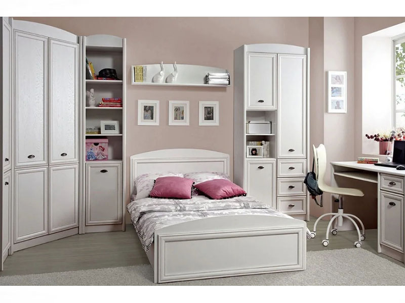 Функциональность, эстетичный внешний вид, сочетание классики и современности – основные характеристики коллекции «Салерно». Белые рамочные фасады дополнены фантазийными ручками, выступающими в качестве дополнительного декора. Благодаря множеству мест для хранения мебель прекрасно подойдет в комнату как младшего школьника, так и подростка.