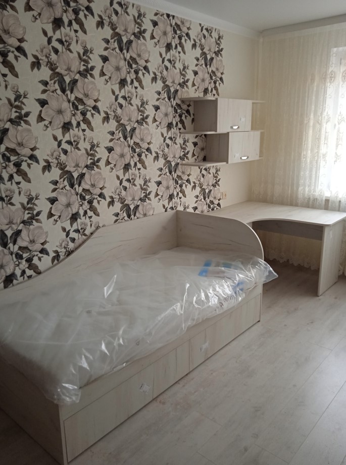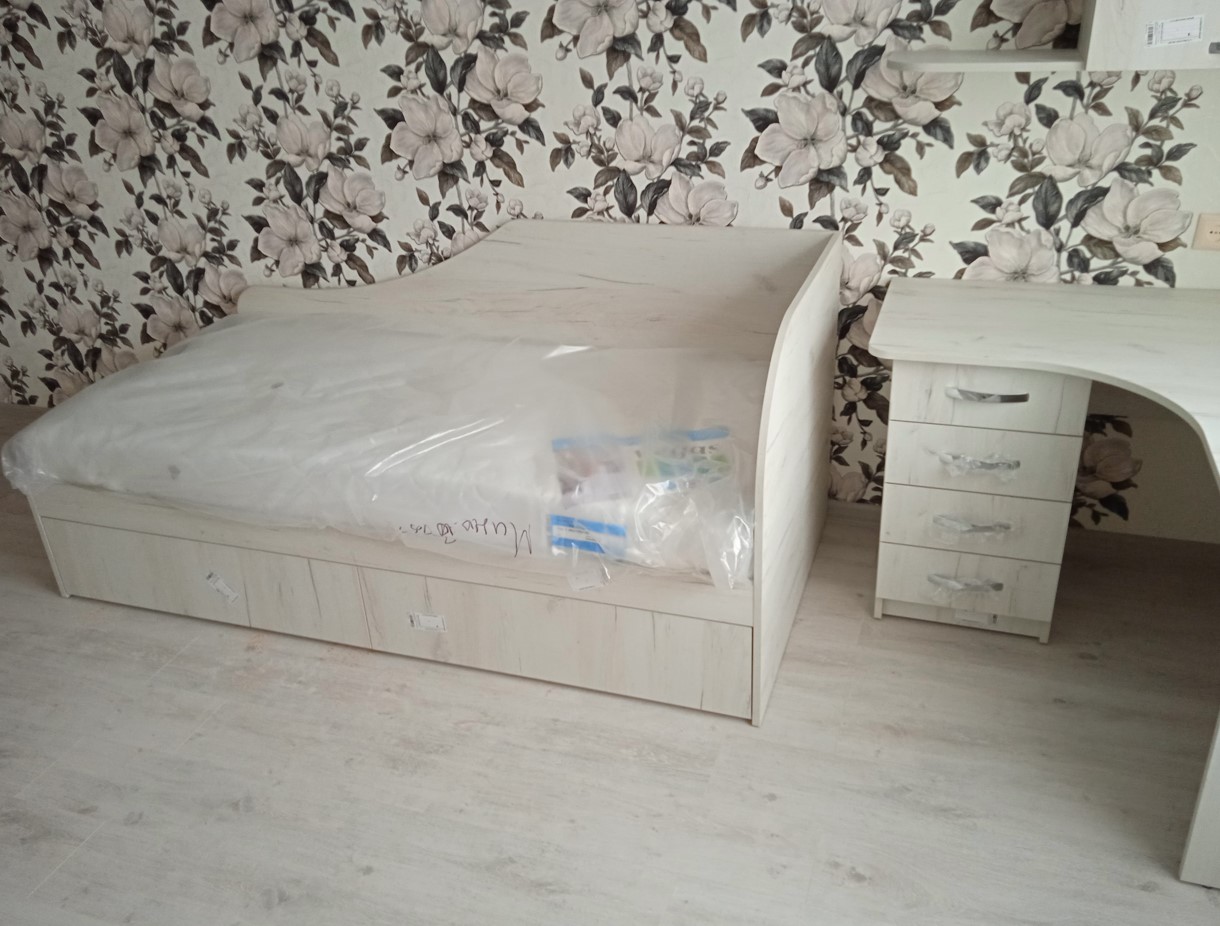 В комплекте: стол, шкаф и кровать.