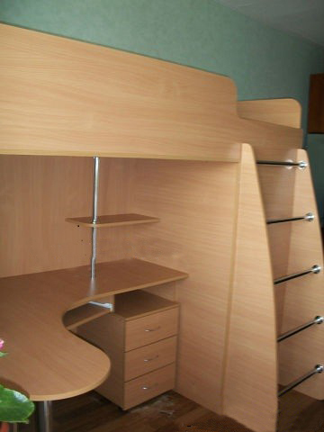 Выдвижная тумба. Ящики для постельного белья. Стол письменный.