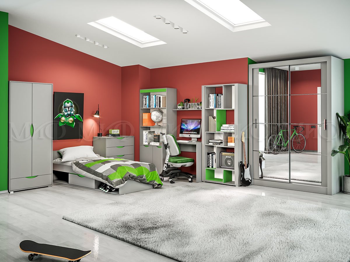 Коллекция мебели в современном стиле для обустройства комнаты подростка. Материал: ЛДСП.