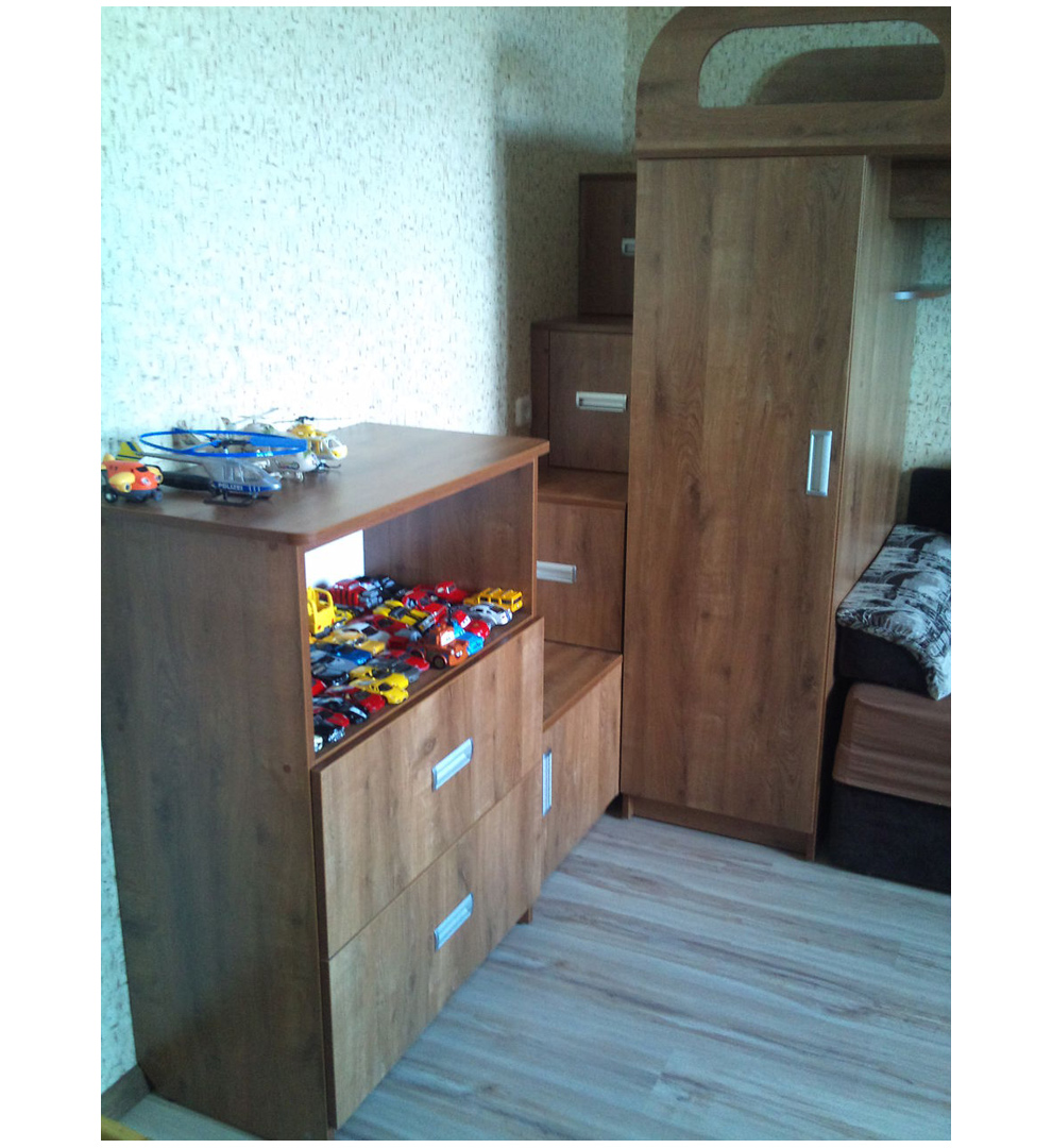Современный набор для детской комнаты имеет в своем составе предметы, необходимые для создания комфортной обстановки в спальне ребенка. Набор для детской укомплектован удобной двухъярусной кроватью, тумбой и вместительным шкафом.