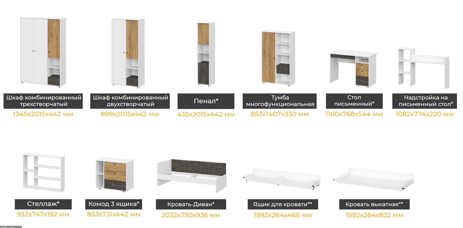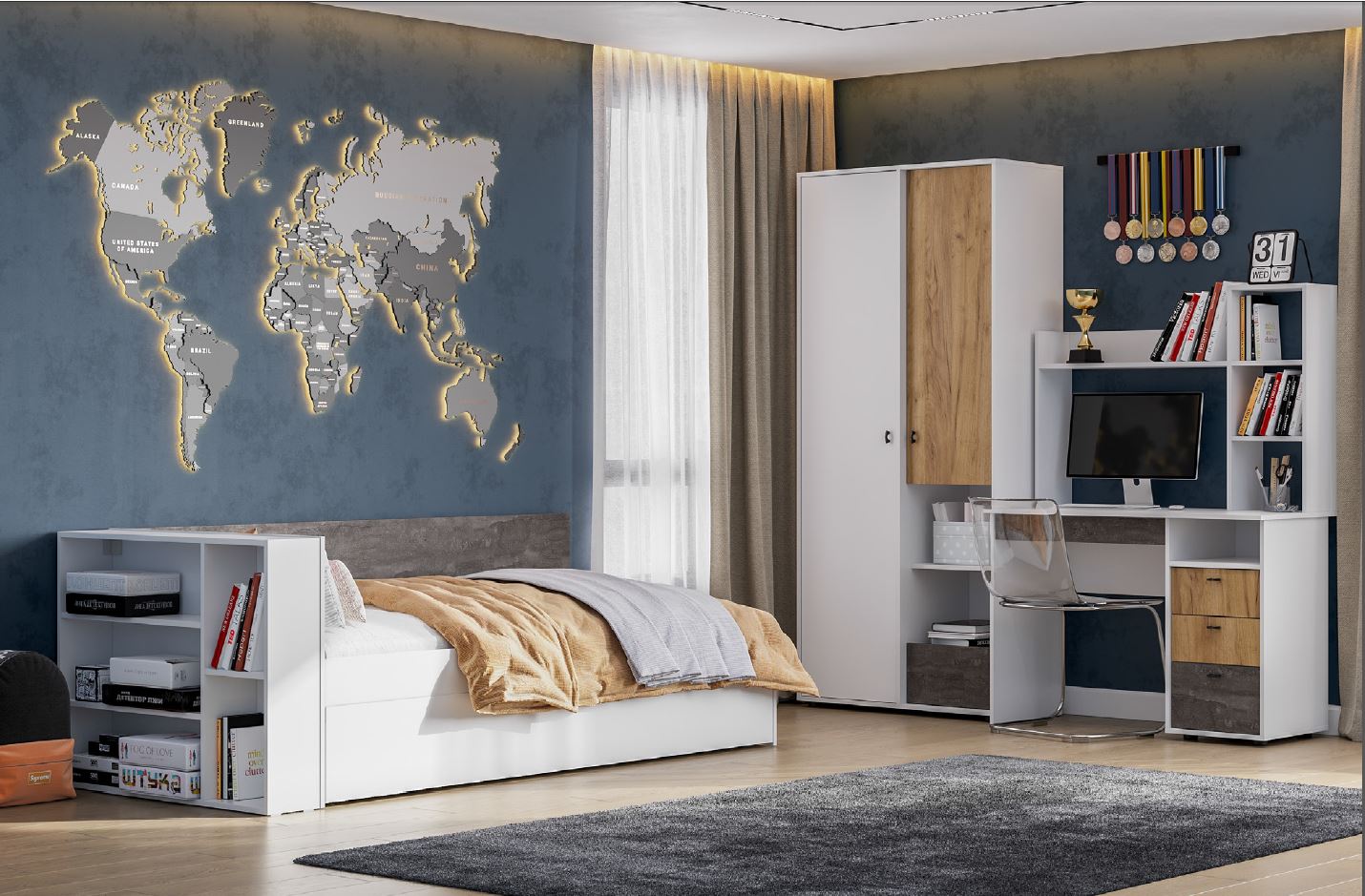 Коллекция мебели в современном стиле для обустройства комнаты подростка. Материал: ЛДСП.