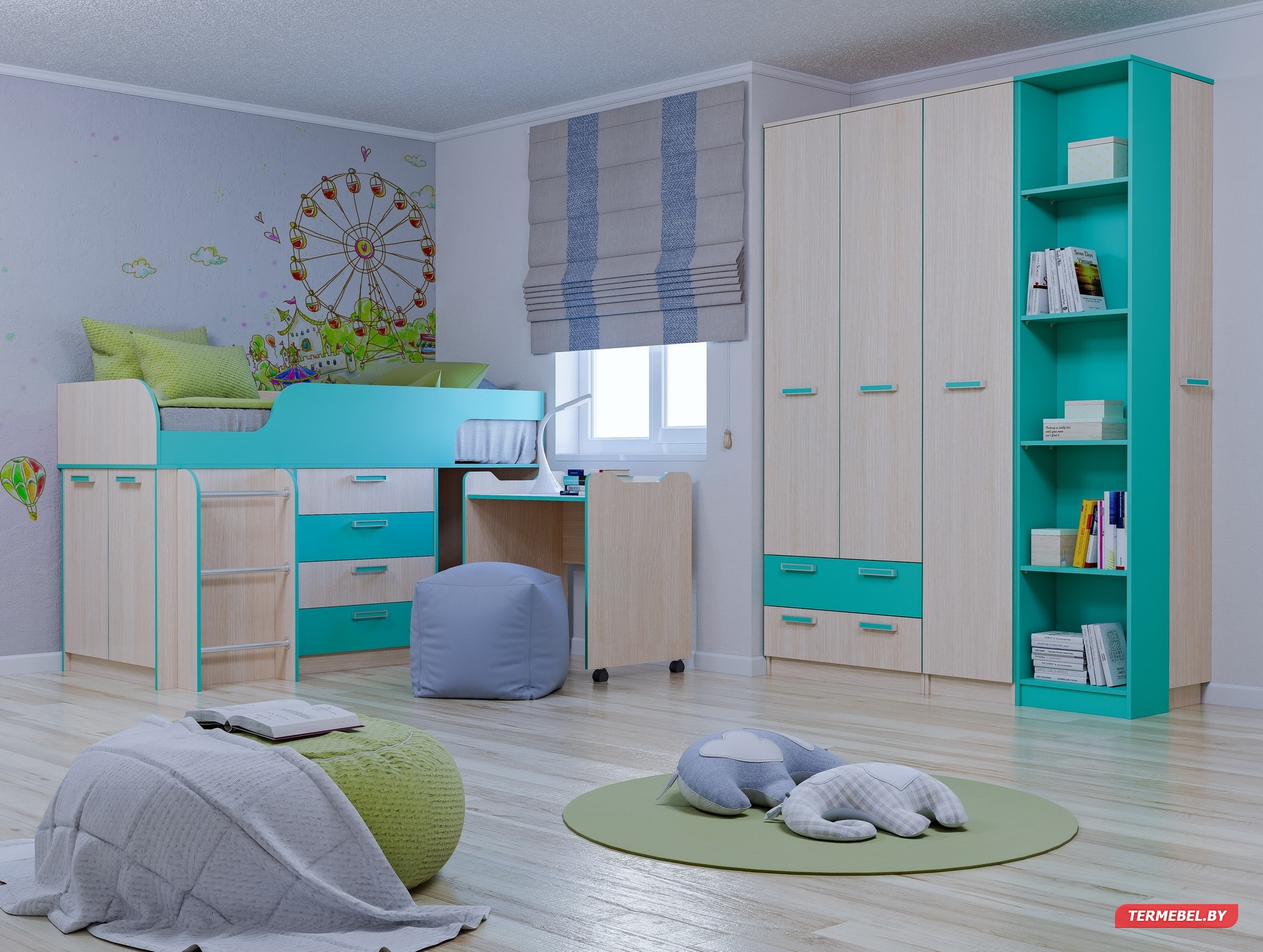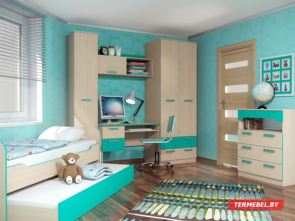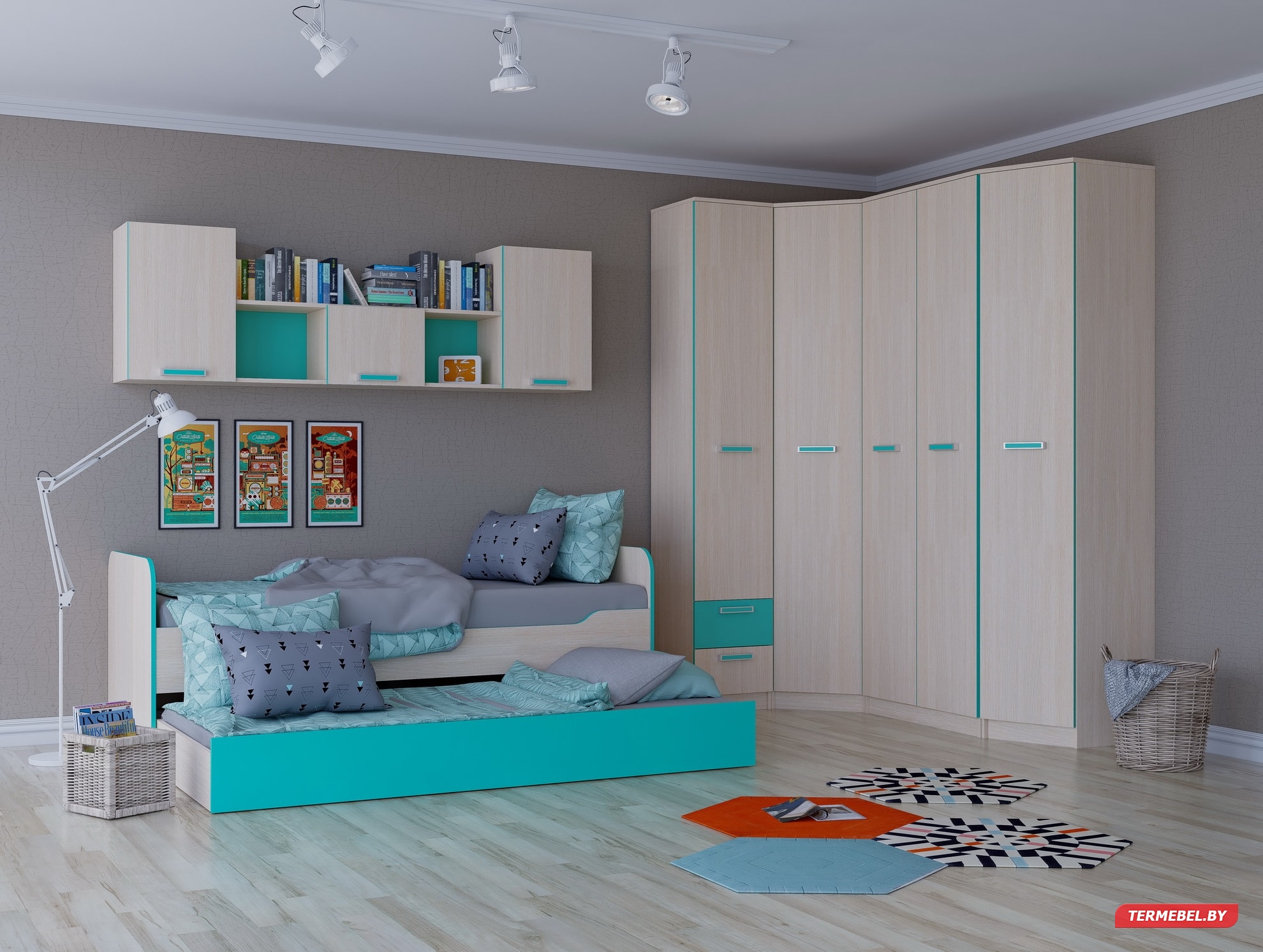 Коллекция мебели в современном стиле для обустройства комнаты подростка. Материал: ЛДСП.