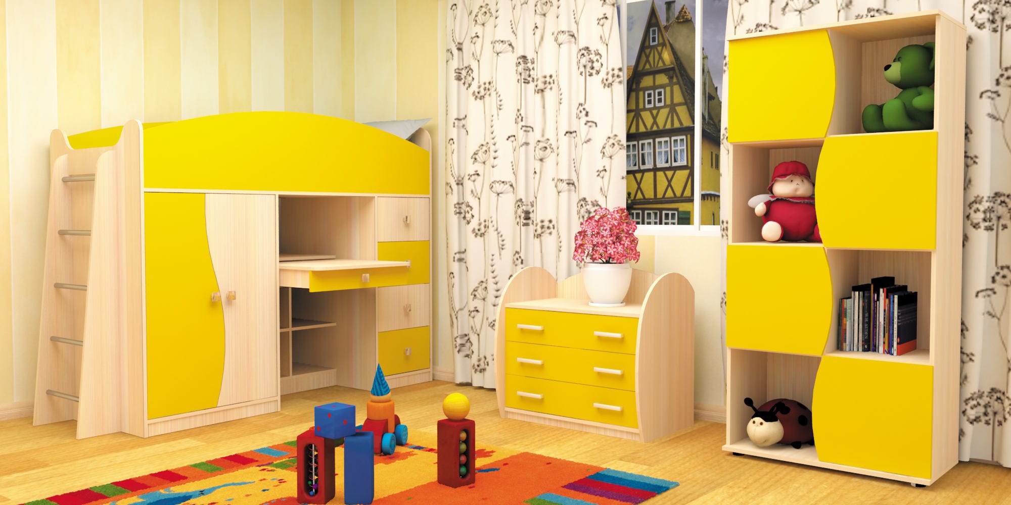 Эстетичная модульная коллекция мебели для обустройства детской комнаты. Материал: МДФ покрытый плёнкой, ЛДСП.