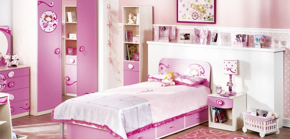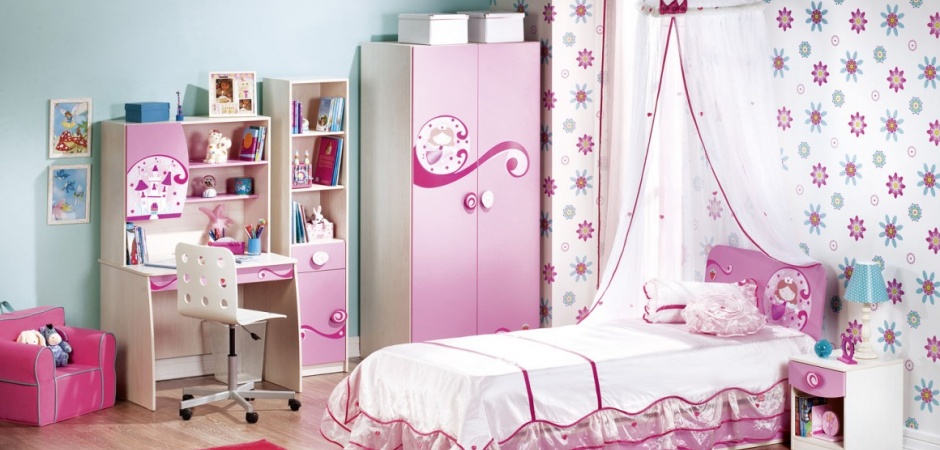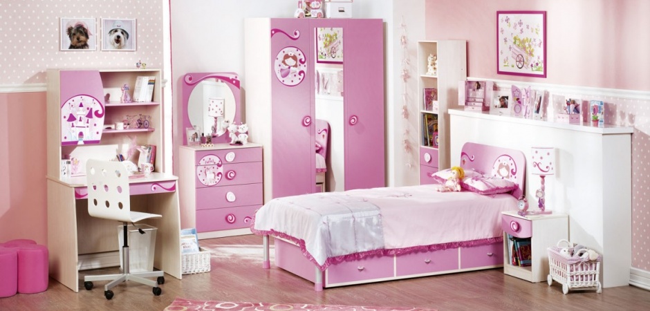 Набор мебели для детской комнаты. Цвет: белый / розовый