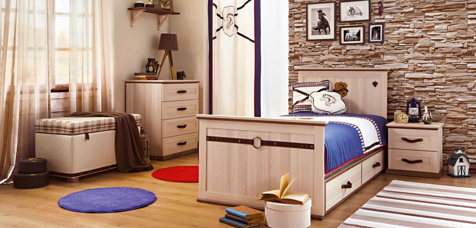 Коллекция мебели в современном стиле для обустройства комнаты подростка. Материал: ЛДСП.