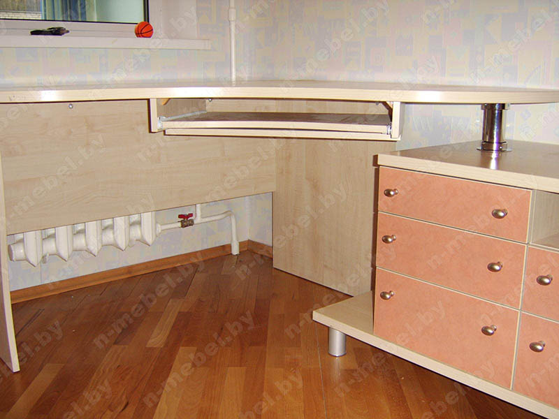 Современный набор мебели обладает достаточно большими параметрами и превосходной вместительностью. В составе набора: угловой компьютерный стол с большой тумбой. Подвесная часть представлена в виде настенного модуля с открытыми полками разных размеров. Нежный розовый цвет фасадов позволит мебели создать в вашей комнате домашнюю обстановку, наполненную спокойствием и гармонией.